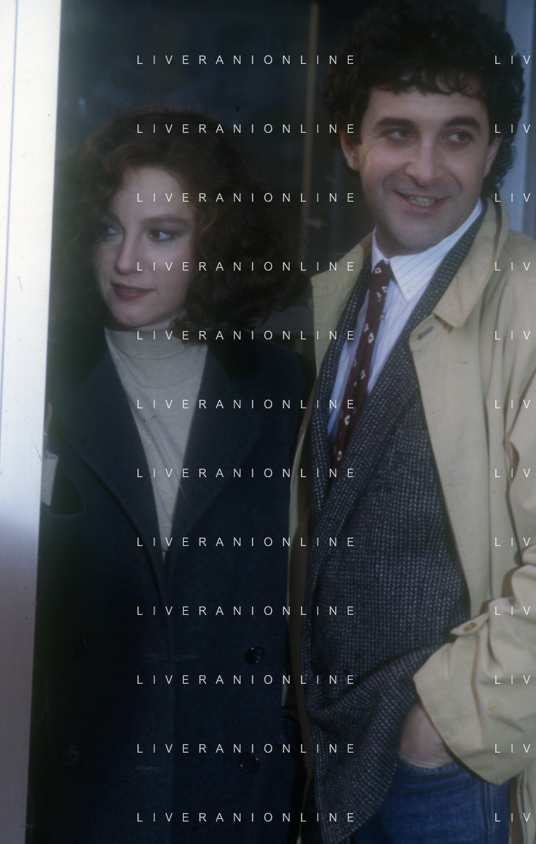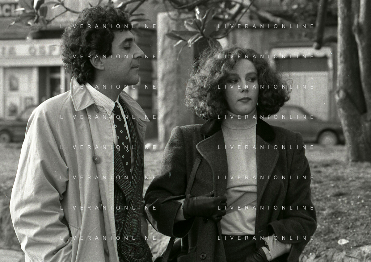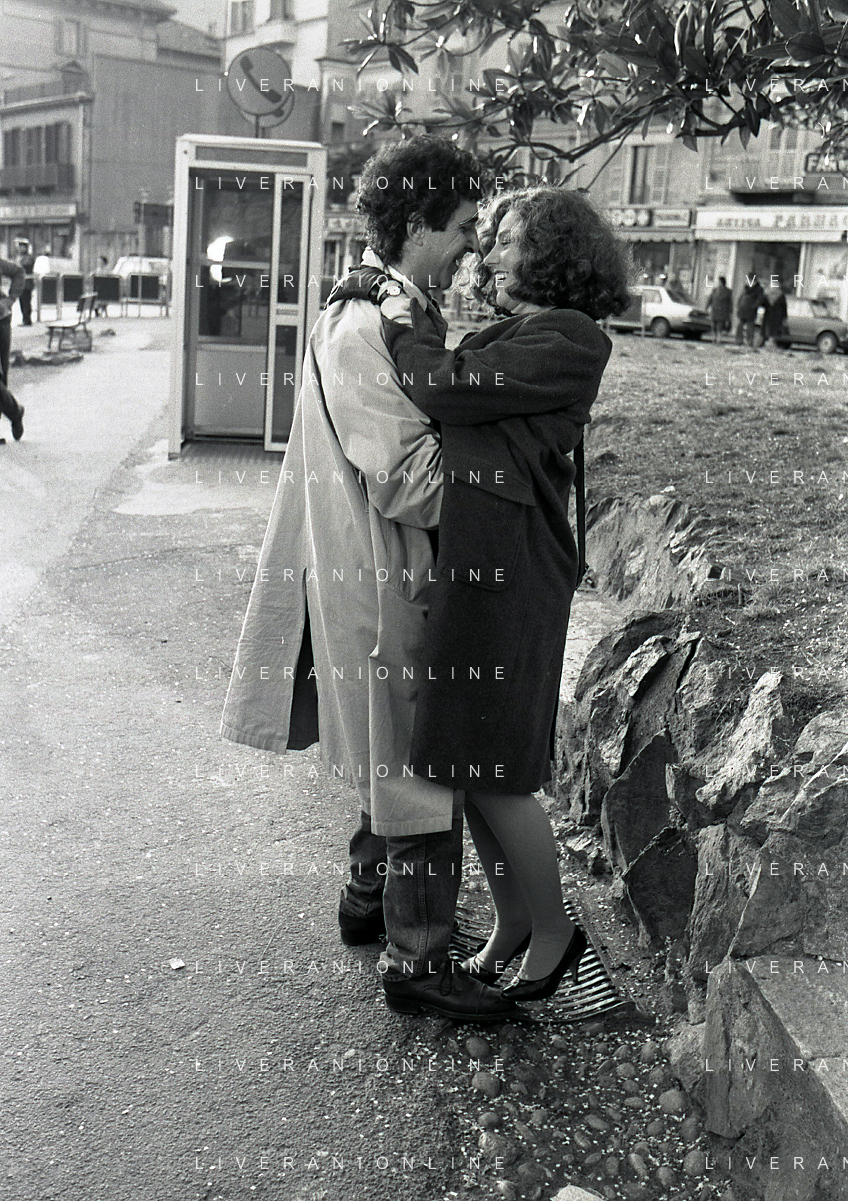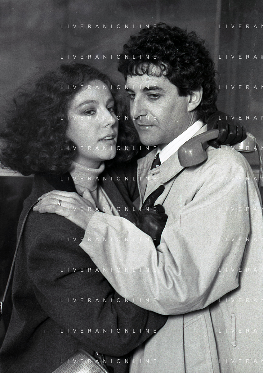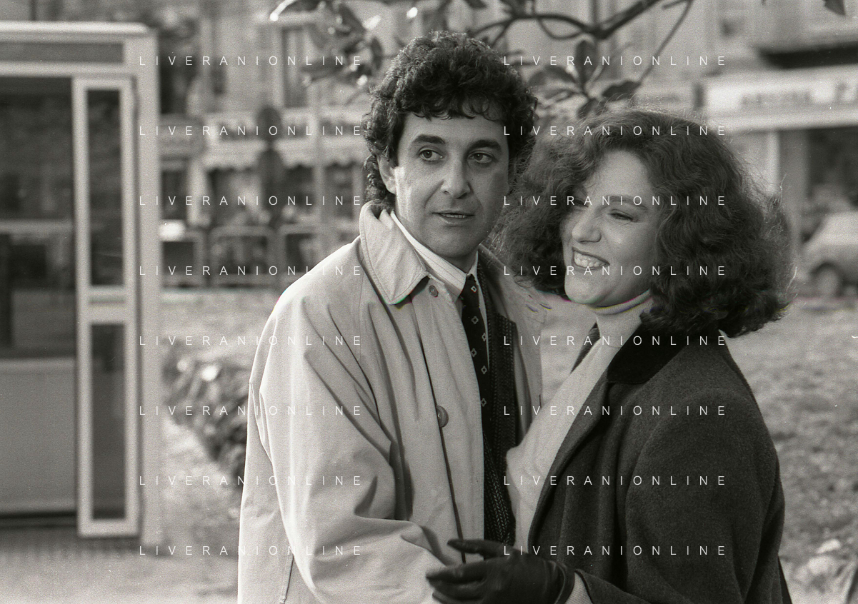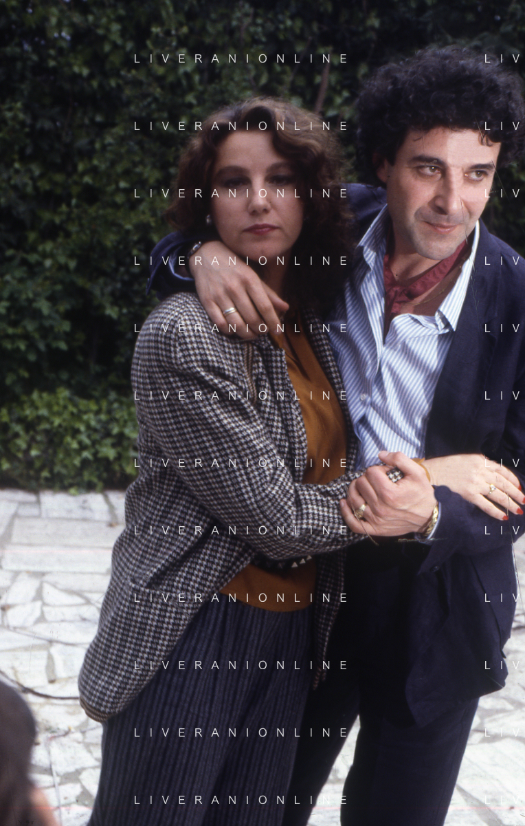 DIAP-RETROSPETTIVA STEFANIA SANDRELLI ATTRICE NELLA FOTO STEFANIA SANDRELLI CON MARZIO HONORATO NELL'ANNO 1984 A IVREA SET DEL FILM SEMBRA AMORE ,UNA SOSTA AG ALDO LIVERANI SAS