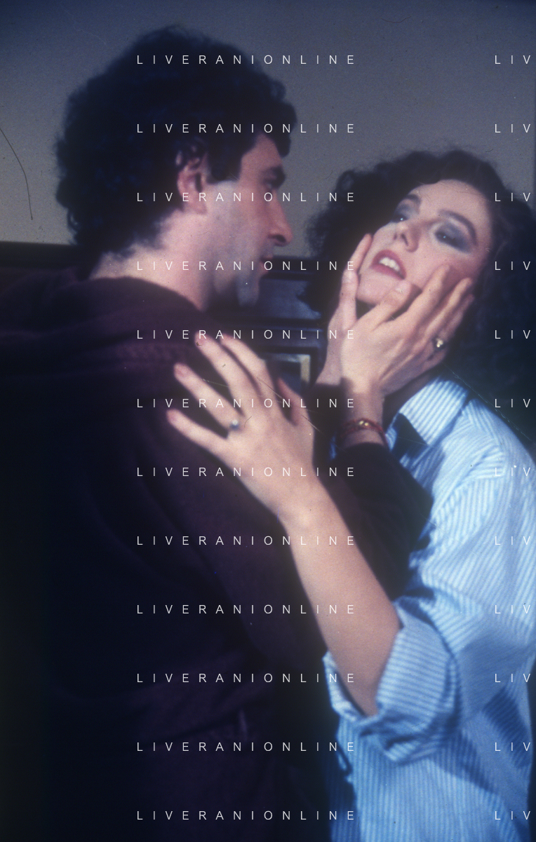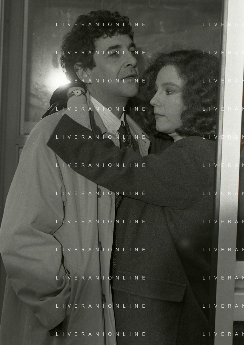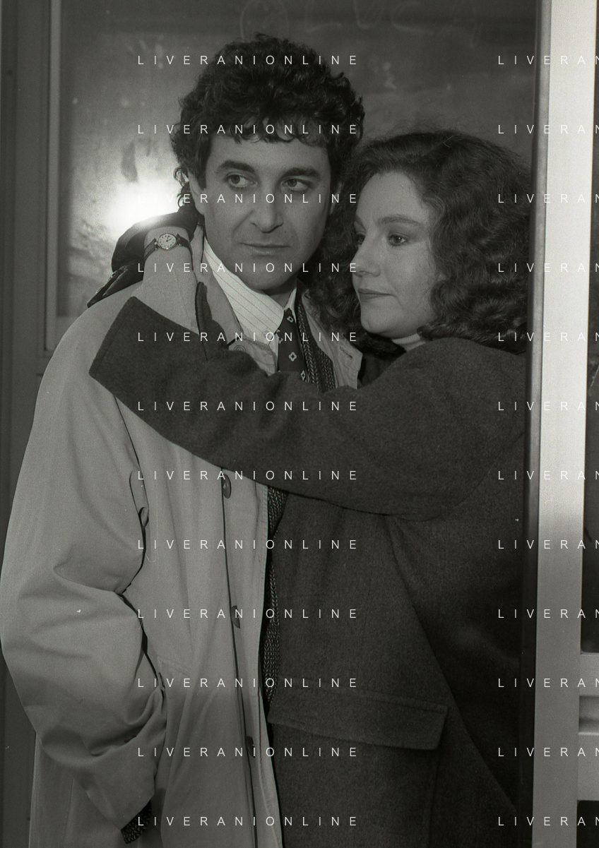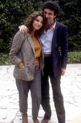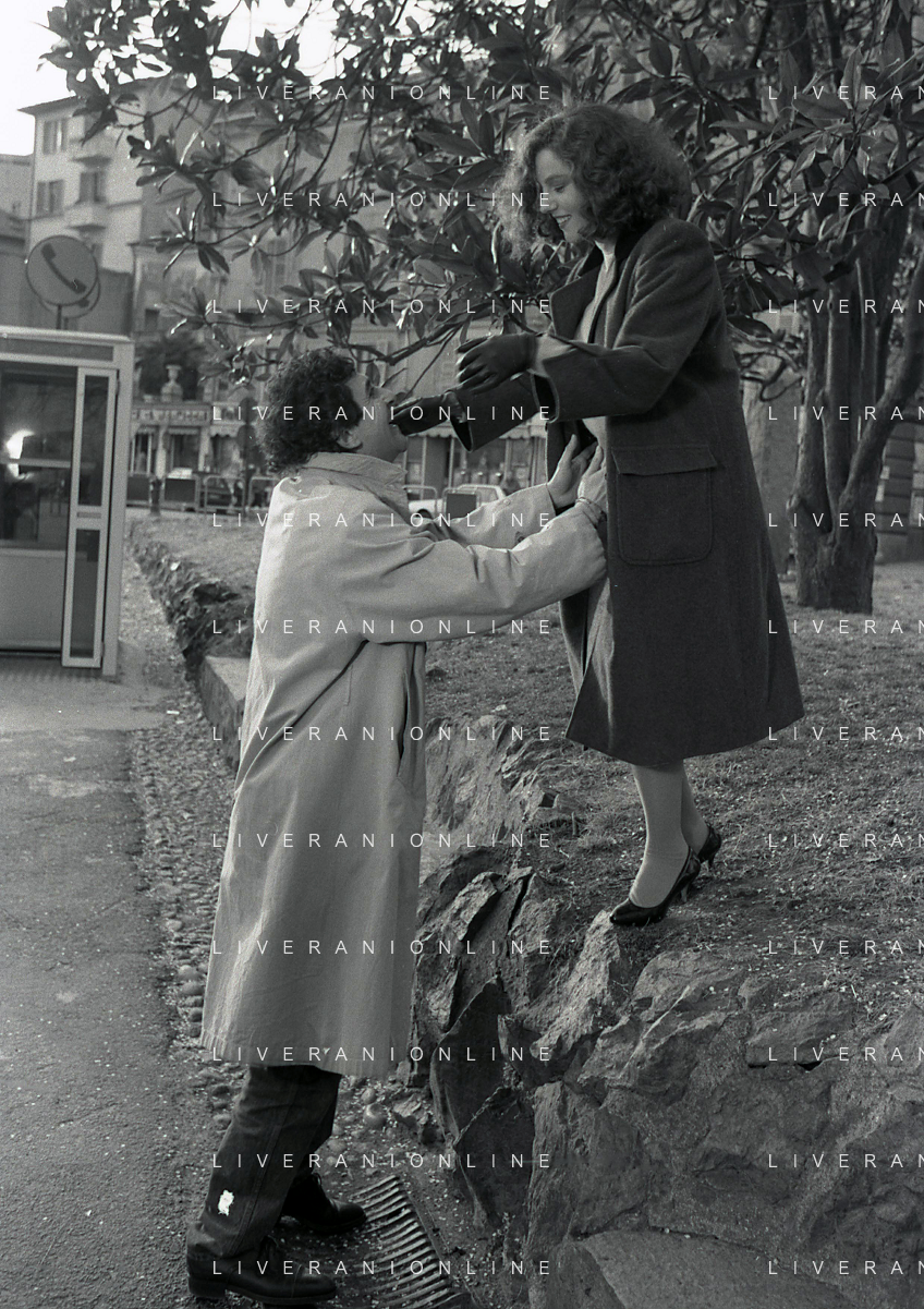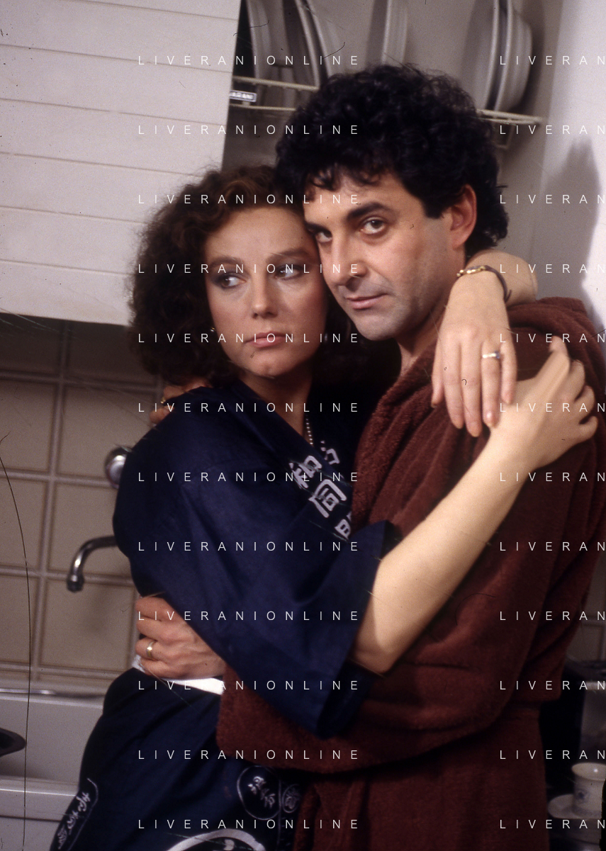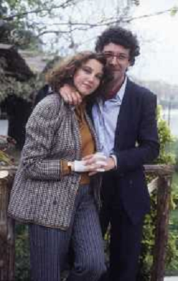 DIAP-RETROSPETTIVA STEFANIA SANDRELLI ATTRICE NELLA FOTO STEFANIA SANDRELLI CON MARZIO HONORATO NELL'ANNO 1984 A IVREA SET DEL FILM SEMBRA AMORE ,UNA SOSTA AG ALDO LIVERANI SAS