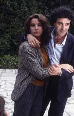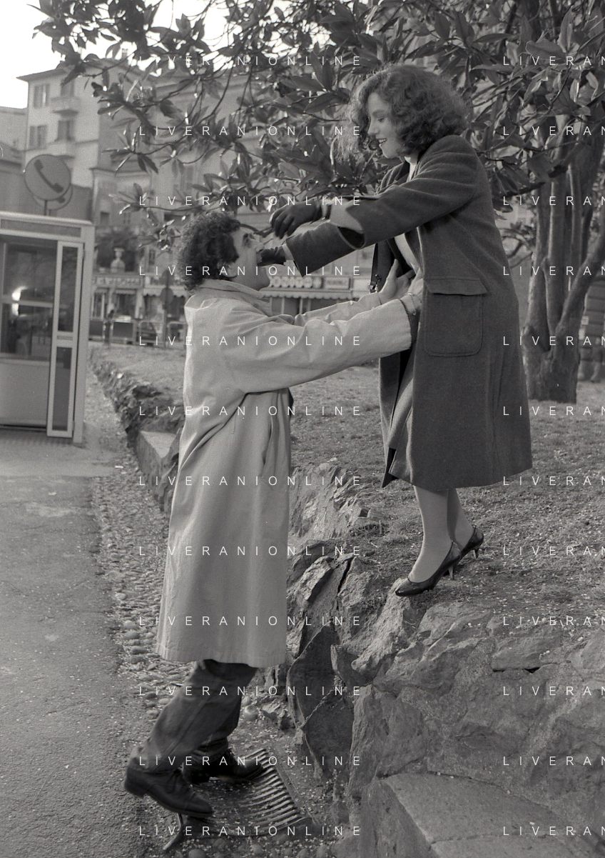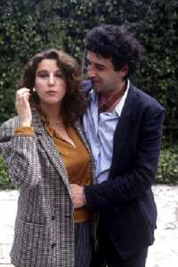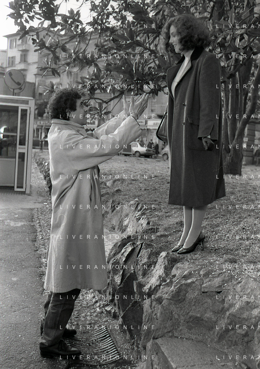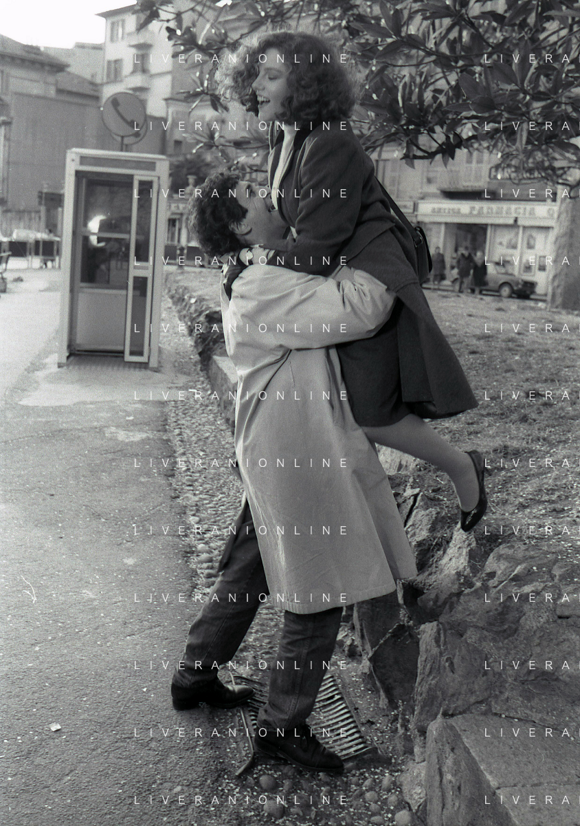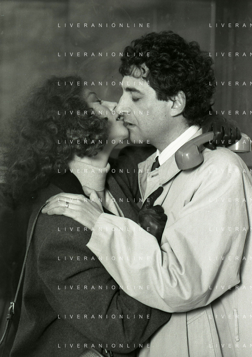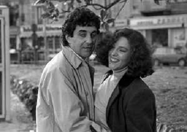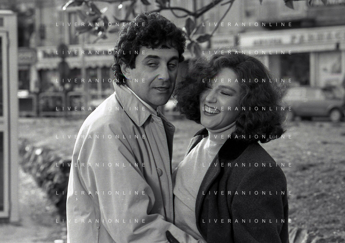 DIAP-RETROSPETTIVA STEFANIA SANDRELLI ATTRICE NELLA FOTO STEFANIA SANDRELLI CON MARZIO HONORATO NELL'ANNO 1984 A IVREA SET DEL FILM SEMBRA AMORE ,UNA SOSTA AG ALDO LIVERANI SAS