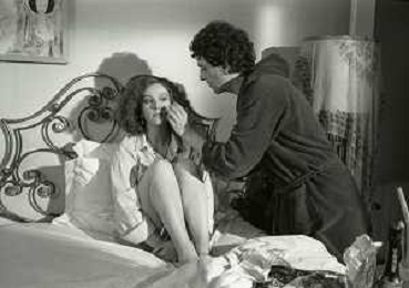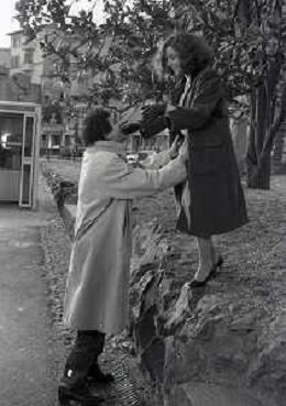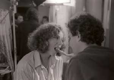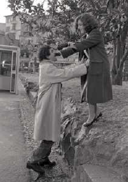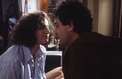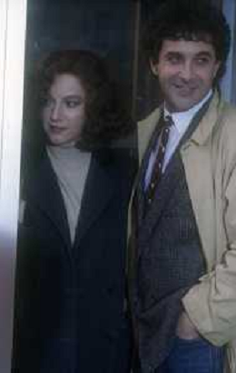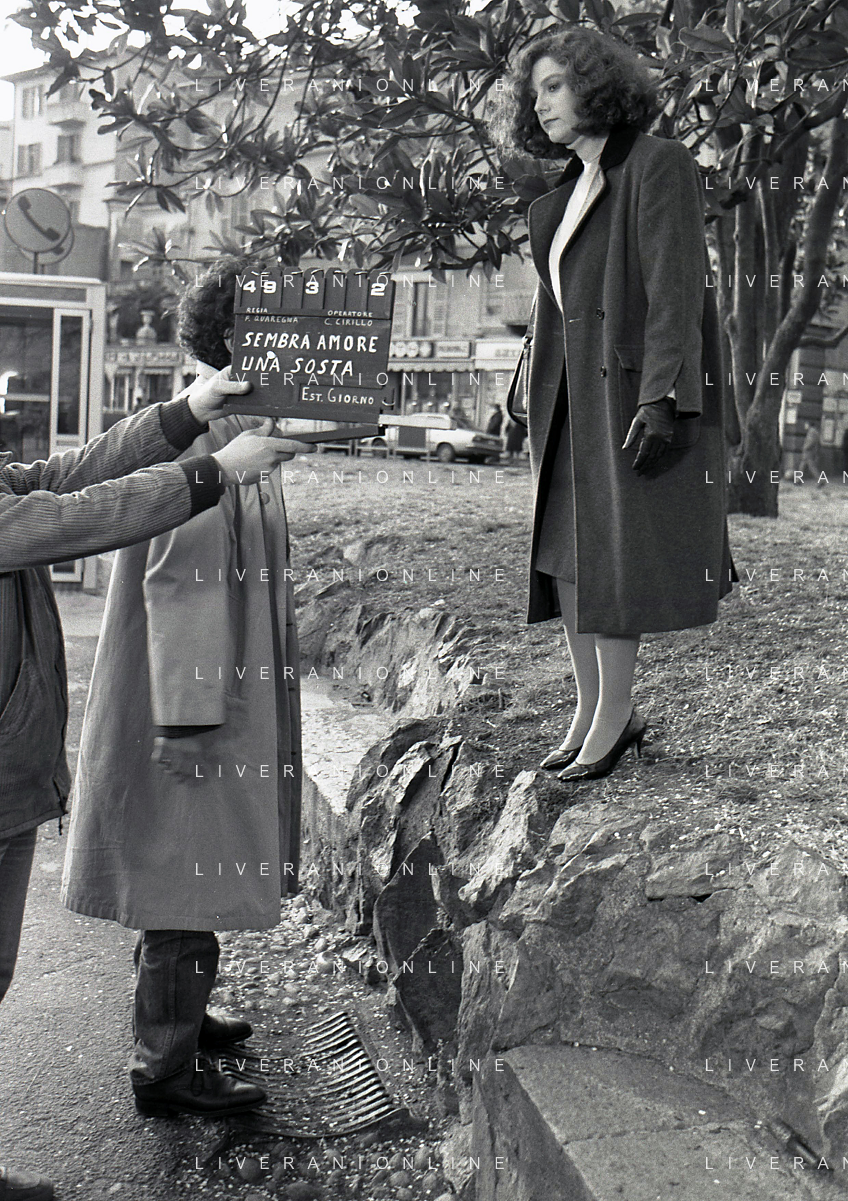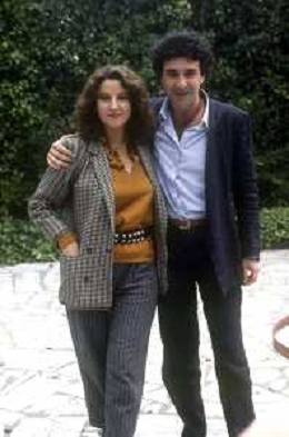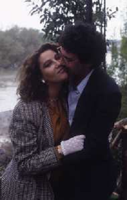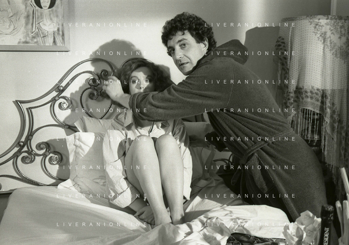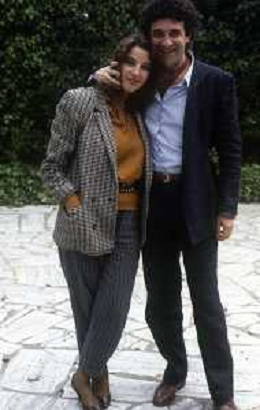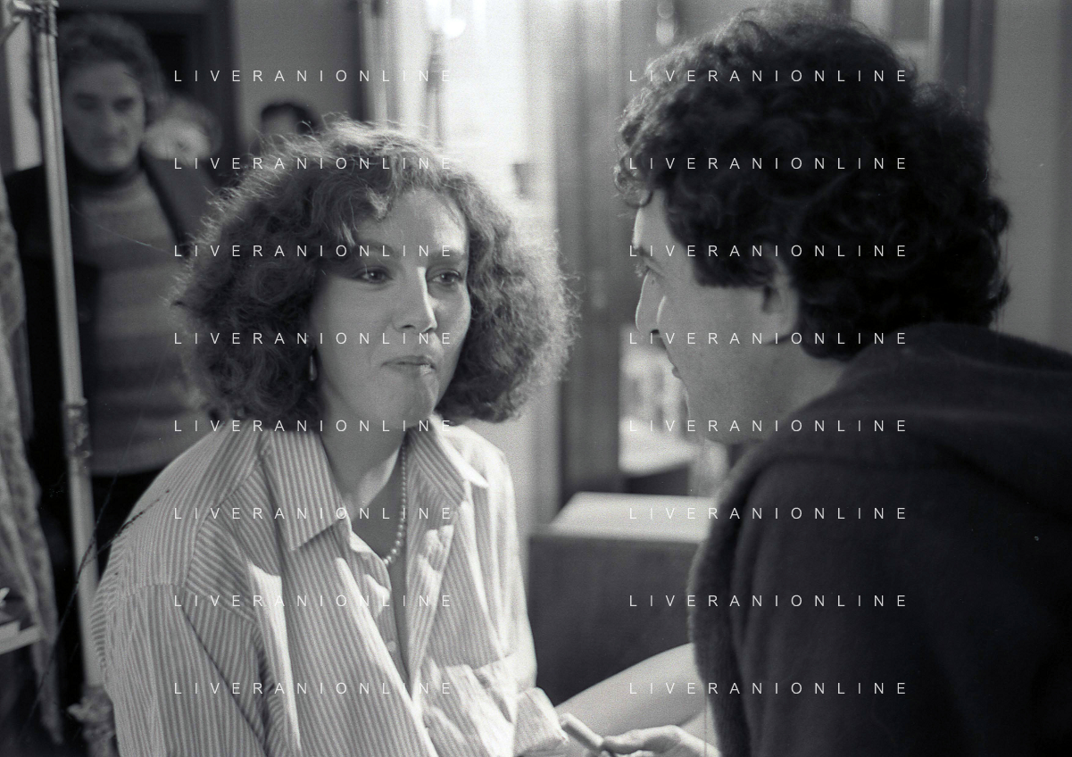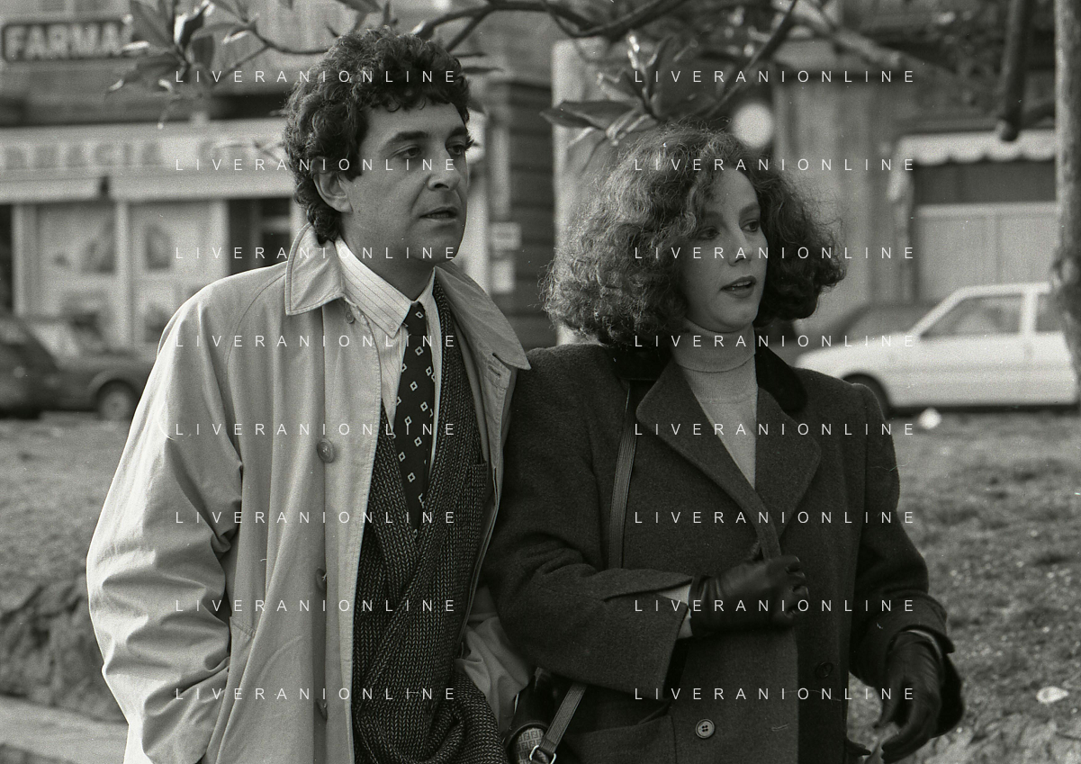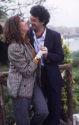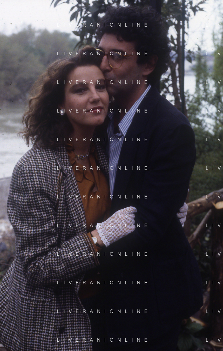 DIAP-RETROSPETTIVA STEFANIA SANDRELLI ATTRICE NELLA FOTO STEFANIA SANDRELLI CON MARZIO HONORATO NELL'ANNO 1984 A IVREA SET DEL FILM SEMBRA AMORE ,UNA SOSTA AG ALDO LIVERANI SAS
