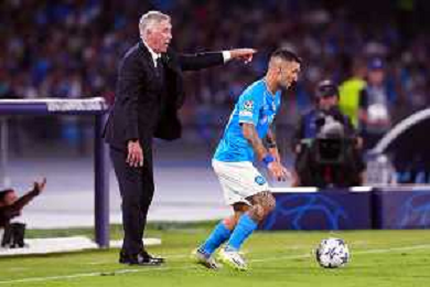 NAPOLI - REAL MADRID CHAMPIONS LEAGUE 03.10.2023 nella foto: Carlo Ancelotti, Matteo Politano ©Mosca/AGENZIA ALDO LIVERANI SAS
