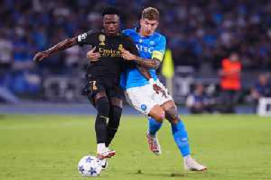 NAPOLI - REAL MADRID CHAMPIONS LEAGUE 03.10.2023 nella foto: Vinicius Junior, Giovanni Di Lorenzo ©Mosca/AGENZIA ALDO LIVERANI SAS