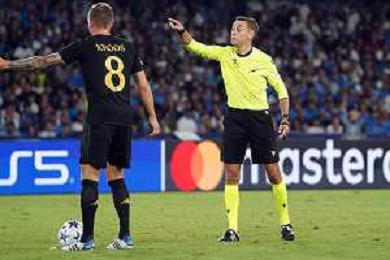 NAPOLI - REAL MADRID CHAMPIONS LEAGUE 03.10.2023 nella foto: arbitro Turpin, Toni Kroos ©Mosca/AGENZIA ALDO LIVERANI SAS