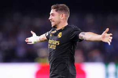 03-10-2023 NAPOLI CHAMPIONS LEAGUE NAPOLI-REAL MADRID nella foto: esultanza Federico Valverde Foto Mosca, Ag.Liverani