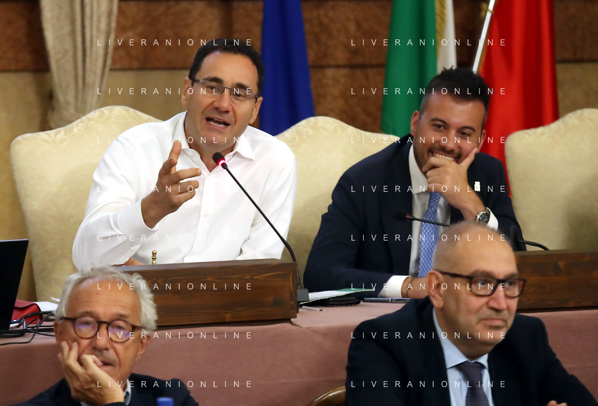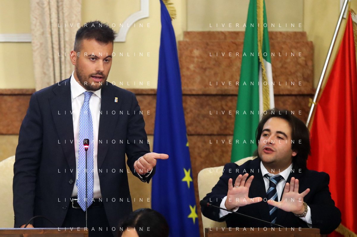 IMOLA 05 10 2023 CONSIGLIO COMUNALE PROTESTA DEI CITTADINI CONTRO LA COSTRUZIONE DELLA NUOVA TECNO STRUTTURA IN PEDAGNA CENTRO SOCIALE LA TOZZONA NELLA FOTO PRESIDENTE DEL CONSIGLIO COMUNALE ROBERTO VISANI E SINDACO MARCO PANIERI foto gianni sanna-ag aldo liverani sas
