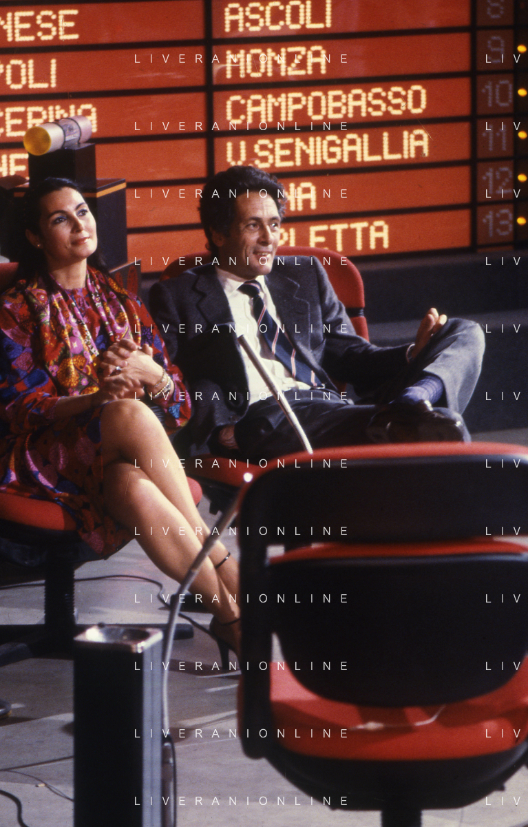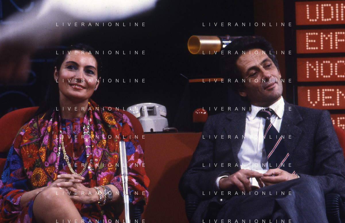 DIAP-RETROSPETTIVA ROSANNA SCHIAFFINO ATTRICE NELLA FOTO ROSANNA SCHIAFFINO A MILANO CON GIORGIO FALCK NELL'ANNO 1982 OSPITI DELLA TRASMISSIONE TELEVISIVA BLITZ AG ALDO LIVERANI SAS