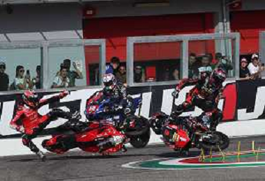IMOLA 08 10 2023 AUTODROMO ENZO E DINO FERRARI CAMPIONATO ITALIANO VELOCITA' SUPERBIKE GARA DUE VINTA DA ALESSANDRO DELBIANCO LORENZO ZANETTI CAMPIONE ITALIANO NELLA FOTO CADUTA DI LORENZO ZANETTI E MICHELE PIRRO FOTO GIANNI SANNA-AG ALDO LIVERANI SAS