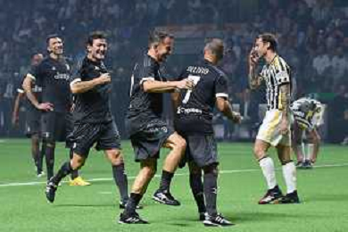 TVMV-Torino 10.10.2023 Pala Apitur ©Manuela Viganti/Agenzia Aldo Liverani Together: a Black & White Show 100 Anni Famiglia Agnelli Nella foto: esultanza juventus ©Viganti / AGENZIA ALDO LIVERANI SAS