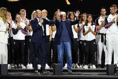 TVMV-Torino 10.10.2023 Pala Apitur ©Manuela Viganti/Agenzia Aldo Liverani Together: a Black & White Show 100 Anni Famiglia Agnelli Nella foto: le squadre della juventus al completo