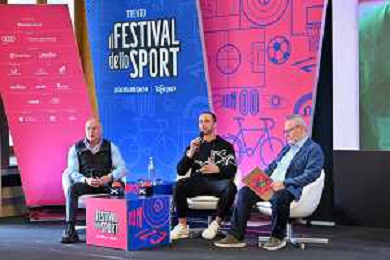 Festival dello Sport 2023 nella foto da SX Luigi Ripamonti, Antonio Serafin e Antonella Palmisano Trento 13-10-2023 Palazzo Geremia Con il piede giusto, incontro con Antonella Palmisano e Antonio Serafin foto Roberto Garavaglia/ag. Aldo Liverani sas
