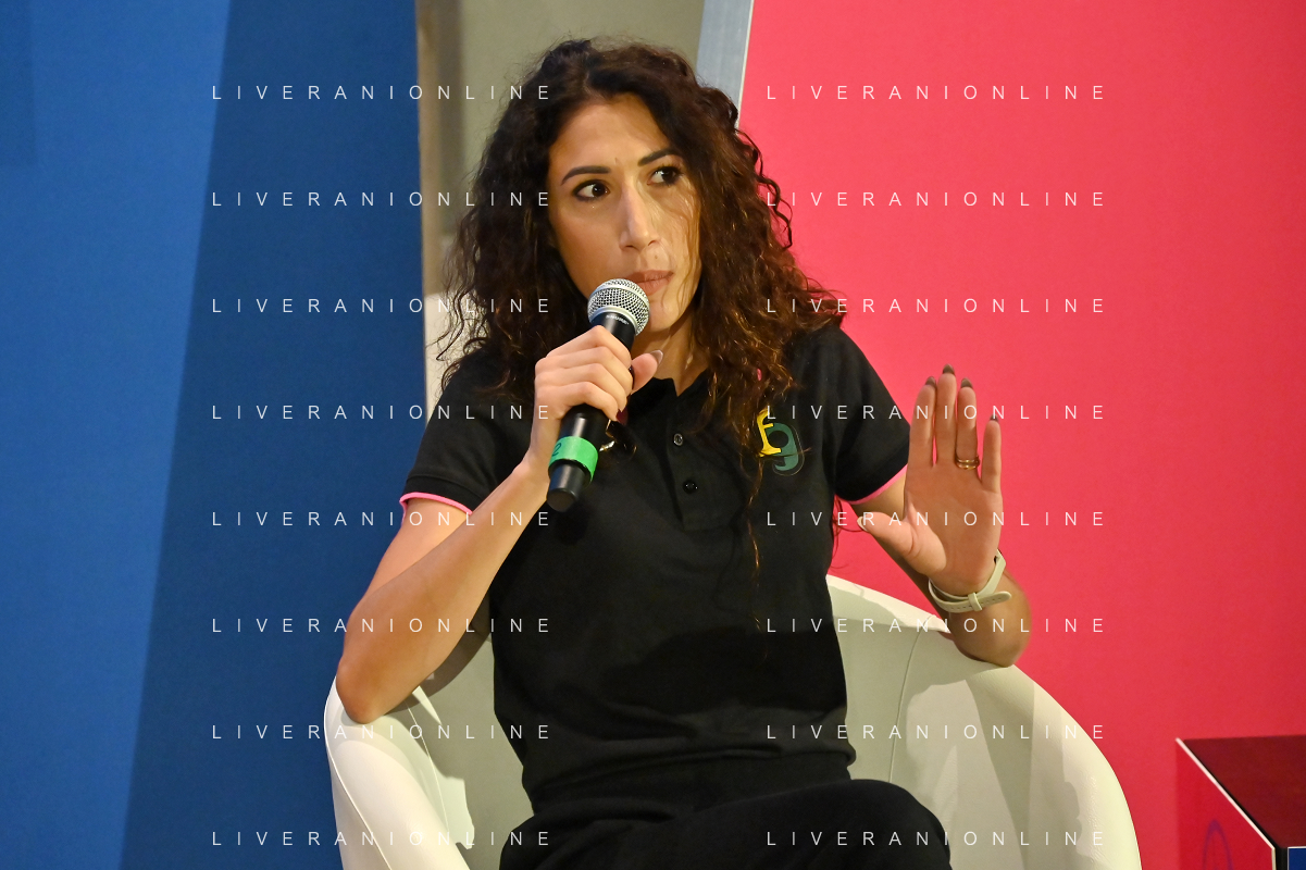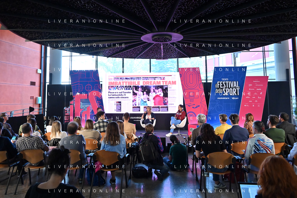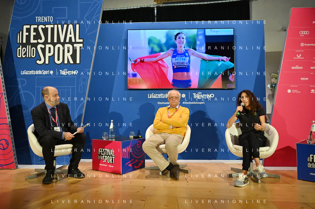Festival dello Sport 2023 nella foto Antonella Palmisano Trento 13-10-2023 Palazzo Geremia Con il piede giusto, incontro con Antonella Palmisano e Antonio Serafin foto Roberto Garavaglia/ag. Aldo Liverani sas