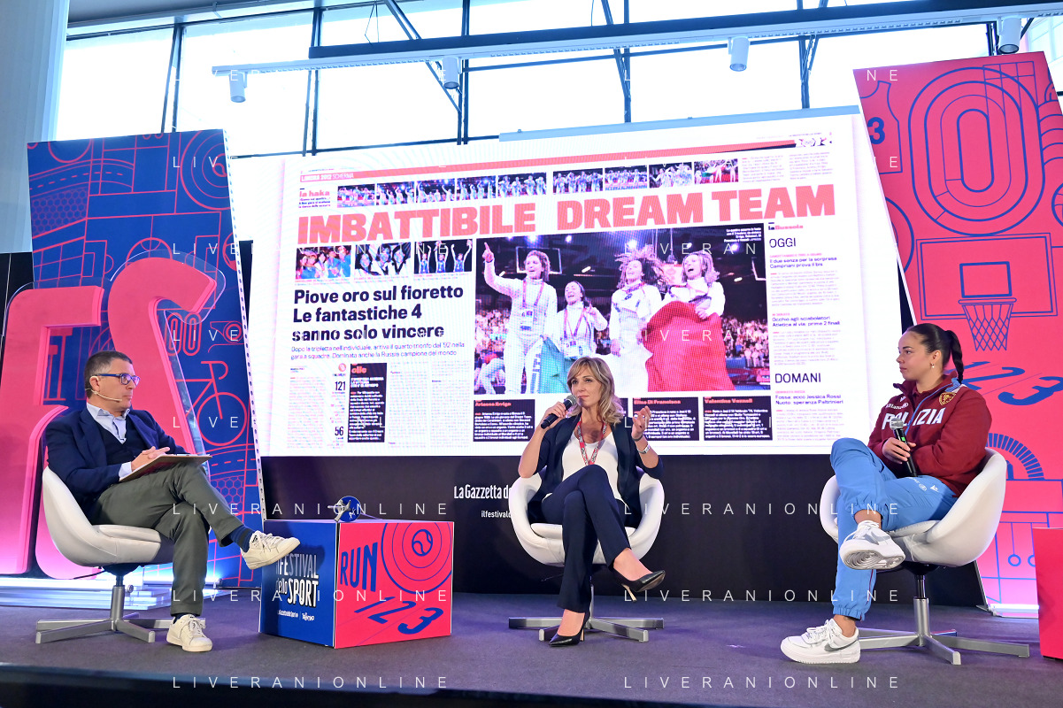 Festival dello Sport 2023 nella foto da SX Paolo Marabini, Valentina Vezzali e Alice Volpi Trento 13-10-2023 Palazzo della Regione Vezzali e Volpi asso di fiori foto Roberto Garavaglia/ag. Aldo Liverani sas