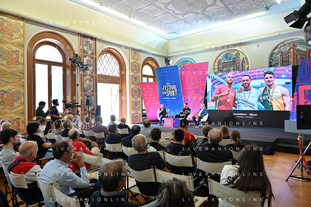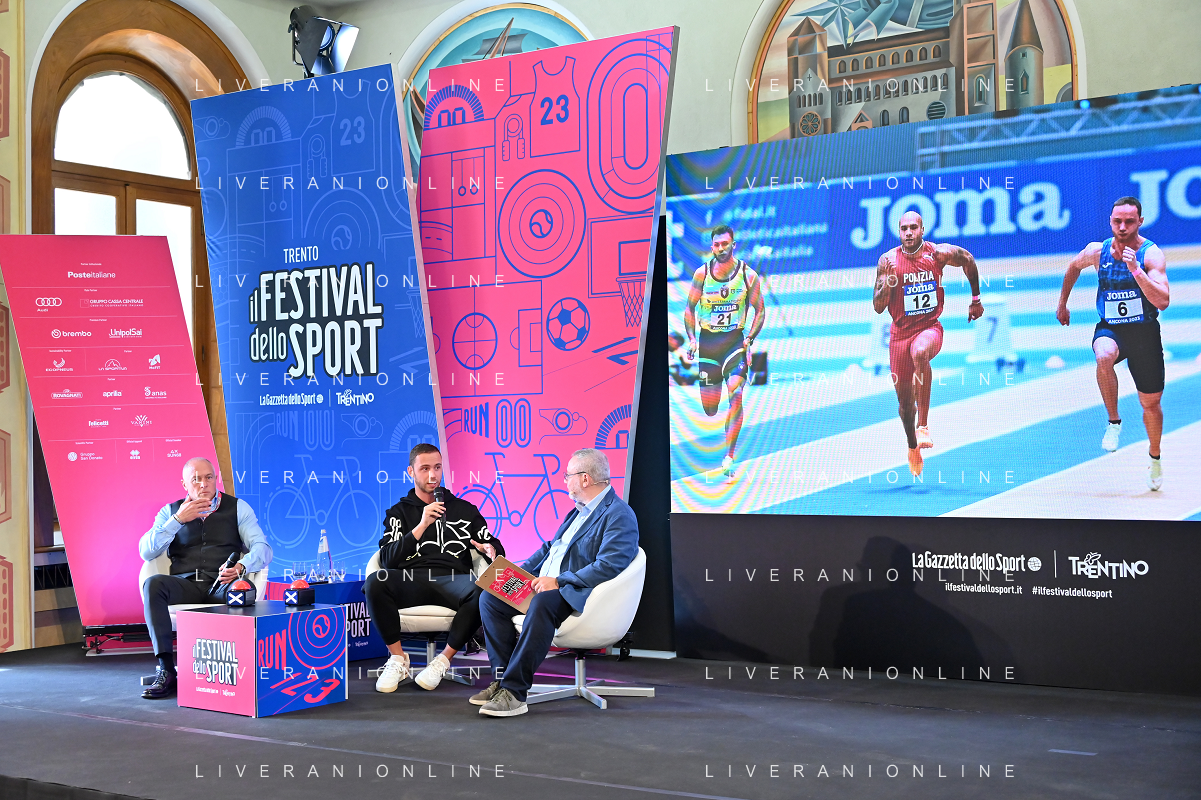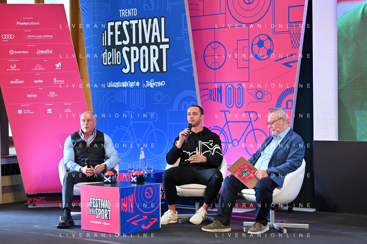 Festival dello Sport 2023 nella foto da SX Stefano Tilli, Samuele Ceccarelli e Andrea Buongiovanni Trento 13-10-2023 Sala Depero Ceccarelli e Tilli, scatto vincente foto Roberto Garavaglia/ag. Aldo Liverani sas