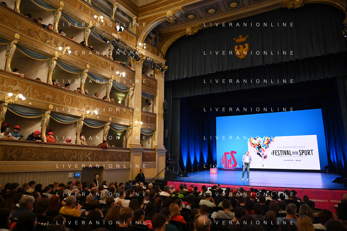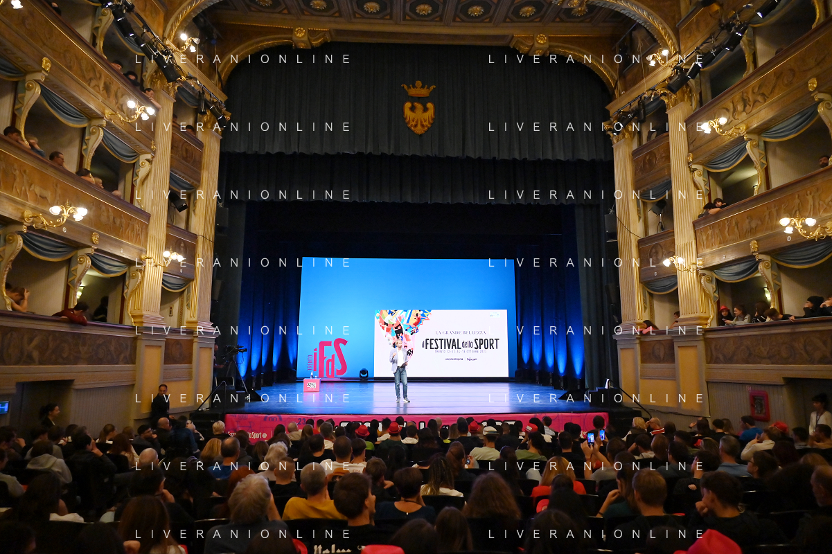 Festival dello Sport 2023 nella foto un momento dello spettacolo Trento 13-10-2023 Teatro Sociale Lo Sport della Vita, lezione spettacolo di Massimiliano Rosolino foto Roberto Garavaglia/ag. Aldo Liverani sas