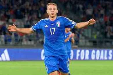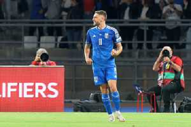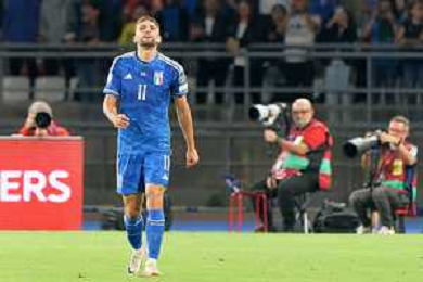 Domenico Berardi of Italy celebrates after scoring a goal during the UEFA EURO 2024 European qualifier match between Italy and Malta at Stadio San Nicola on October 14, 2023 in Bari, Italy. Photo by Emmanuele Mastrodonato/ag. Aldo Liverani sas