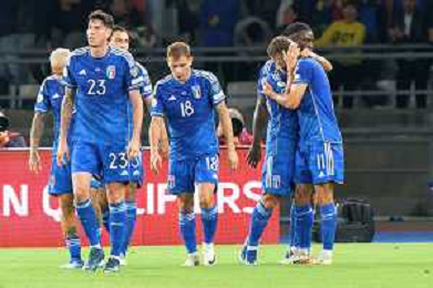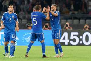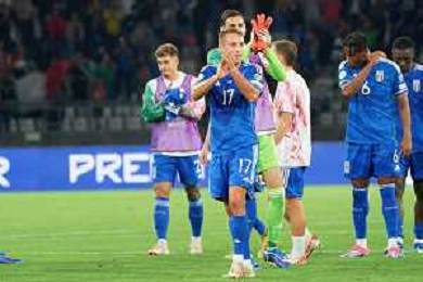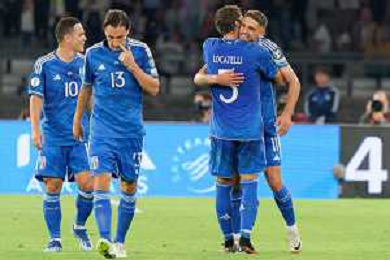 Players of Italy celebrates the victory during the UEFA EURO 2024 European qualifier match between Italy and Malta at Stadio San Nicola on October 14, 2023 in Bari, Italy. Photo by Emmanuele Mastrodonato/ag. Aldo Liverani sas