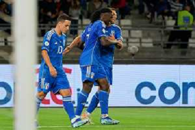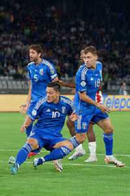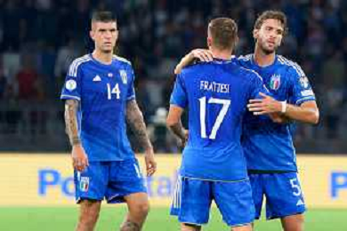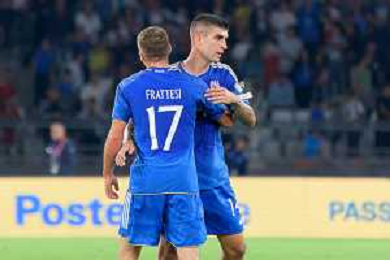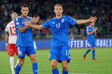 Davide Frattesi of Italy celebrates after scoring a goal with teammates during the UEFA EURO 2024 European qualifier match between Italy and Malta at Stadio San Nicola on October 14, 2023 in Bari, Italy. Photo by Emmanuele Mastrodonato/ag. Aldo Liverani sas