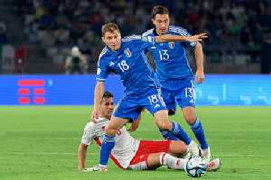 Federico Dimarco of Italy during the UEFA EURO 2024 European qualifier match between Italy and Malta at Stadio San Nicola on October 14, 2023 in Bari, Italy. Photo by Emmanuele Mastrodonato/ag. Aldo Liverani sas
