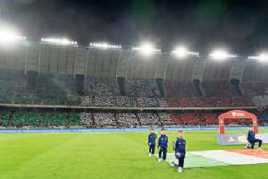 the Italian bench during the national anthem prior the UEFA EURO 2024 European qualifier match between Italy and Malta at Stadio San Nicola on October 14, 2023 in Bari, Italy. Photo by Emmanuele Mastrodonato/ag. Aldo Liverani sas