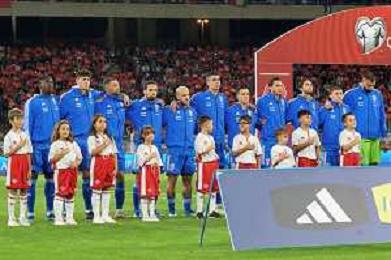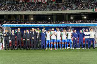 Players of Italy line up during the National Anthems prior the UEFA EURO 2024 European qualifier match between Italy and Malta at Stadio San Nicola on October 14, 2023 in Bari, Italy. Photo by Emmanuele Mastrodonato/ag. Aldo Liverani sas