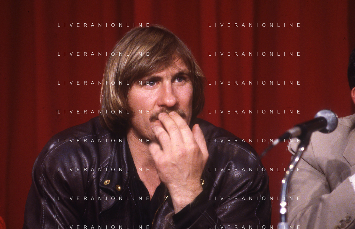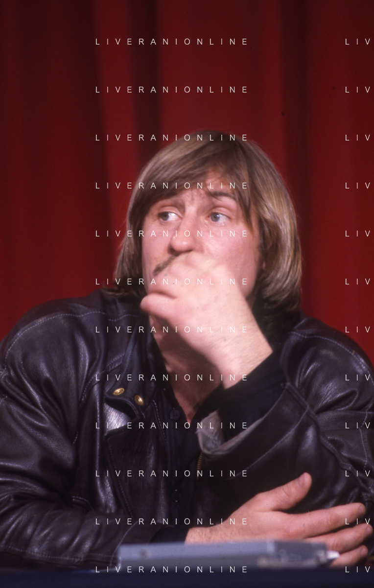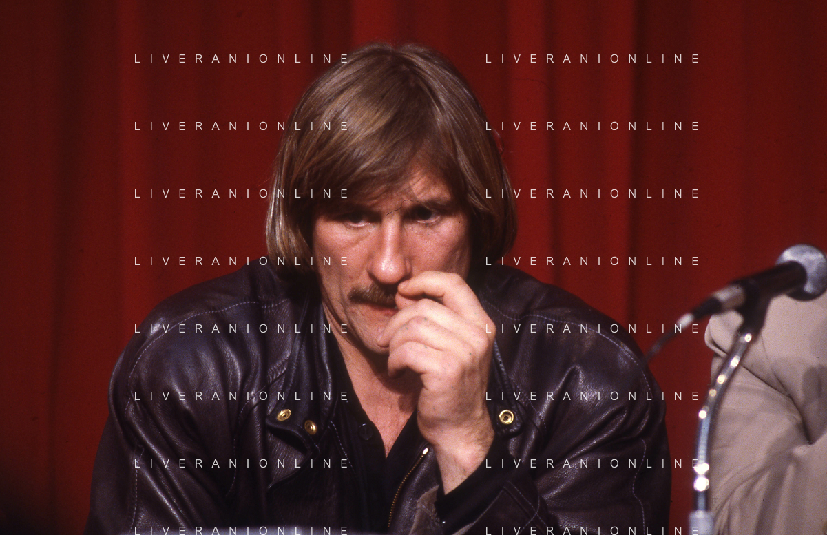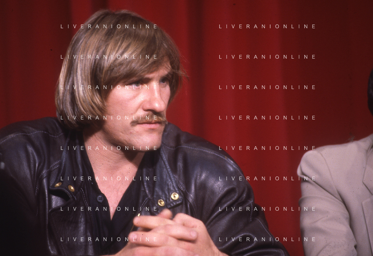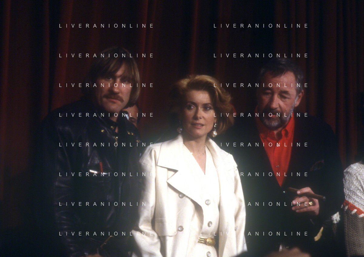 DIAP-RETROSPETTIVA GERARD DEPARDIEU ATTORE NELLA FOTO GERARD DEPARDIEUCON CATHERINE DENEUVE E PHILIPPE NOIRET A CANNES NELL'ANNO 1984 AG ALDO LIVERANI SAS