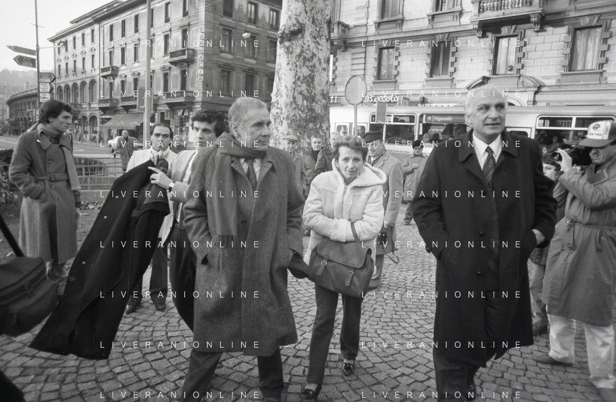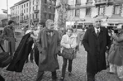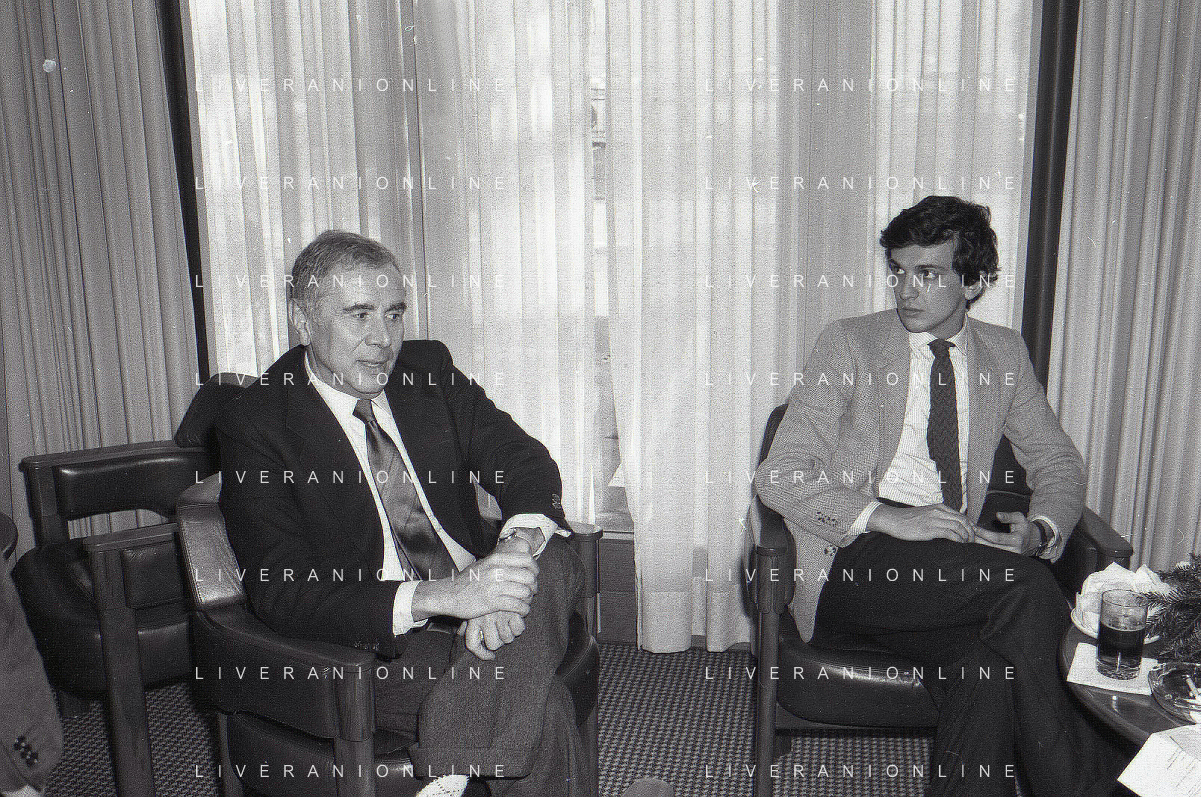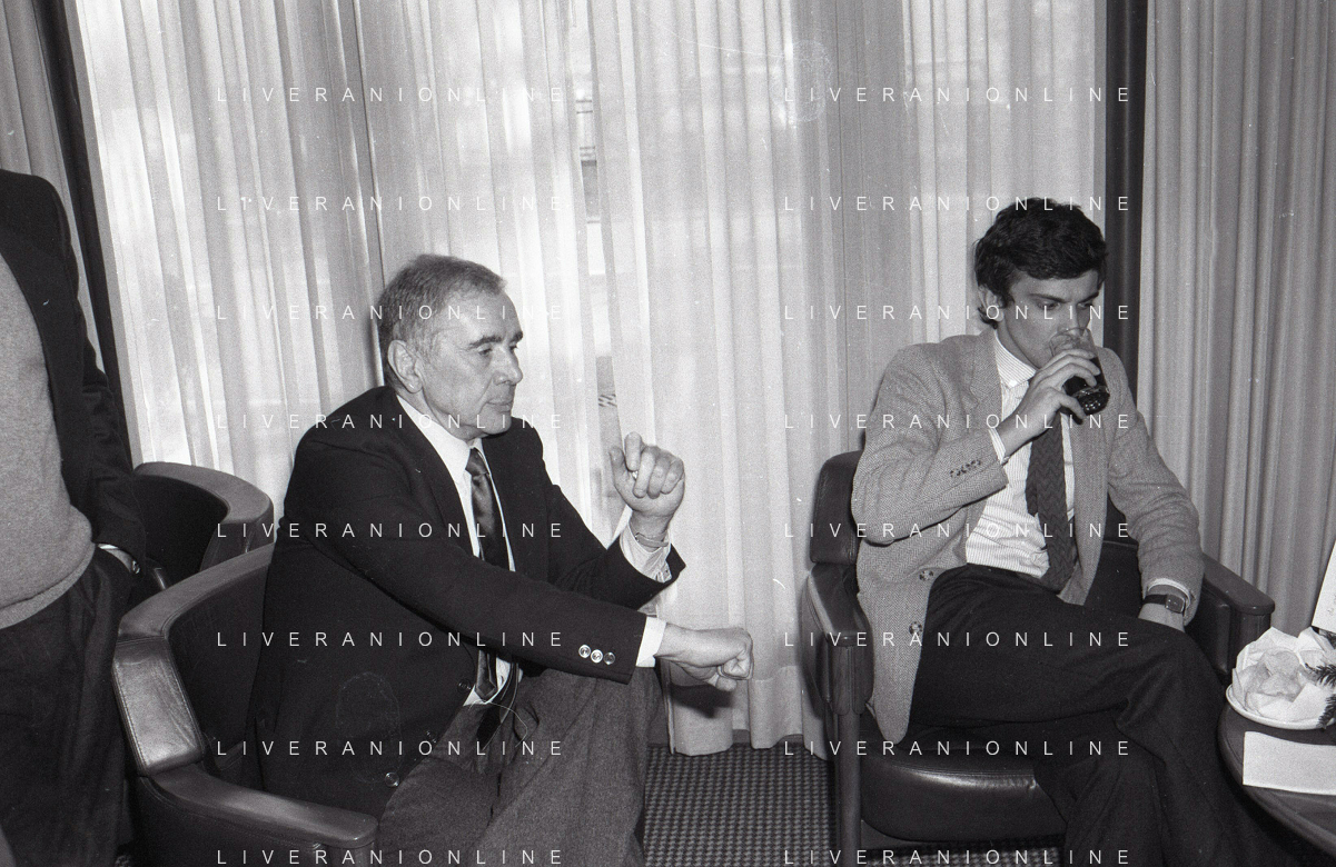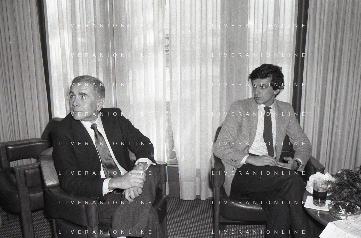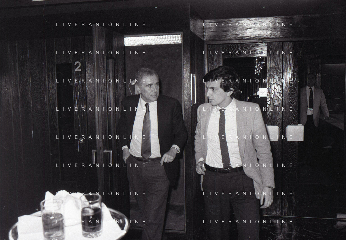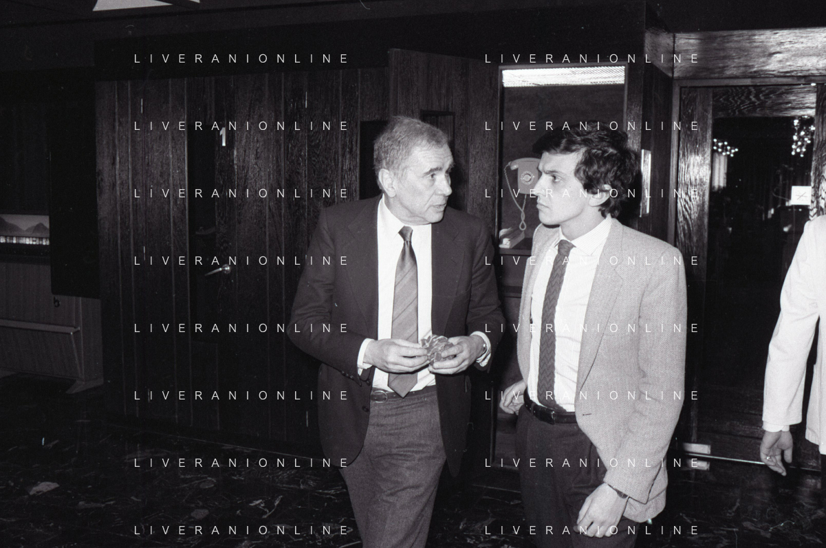 NEG-RETROSPETTIVA ENZO TORTORA PRESENTATORE TELEVISIVO-GIORNALISTA E POLITICO NELLA FOTO ENZO TORTORA A MILANO CON IL SEGRETARIO DEL PARTITO RADICALE GIOVANNI NEGRI AG ALDO LIVERANI SAS