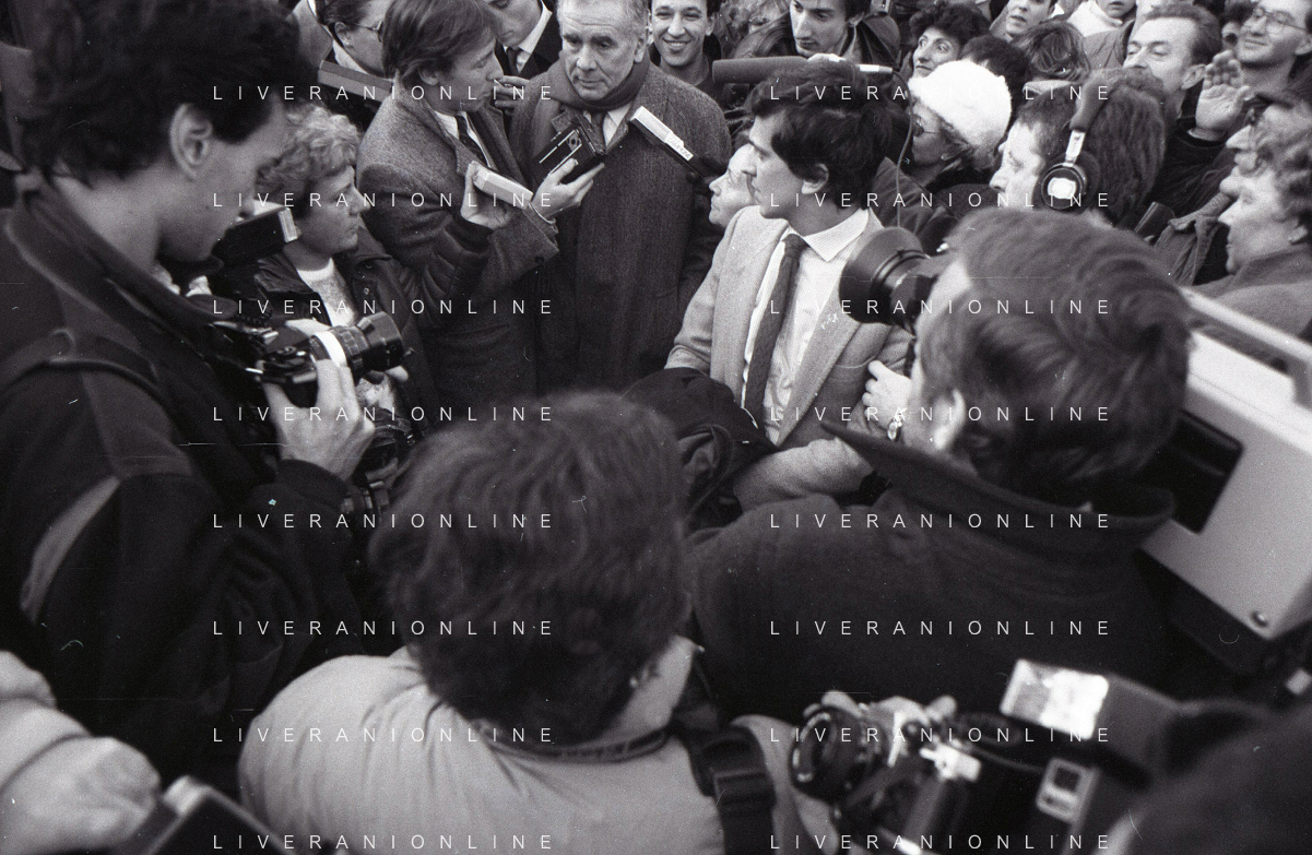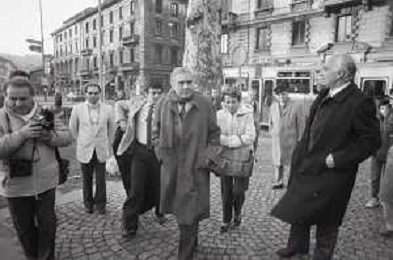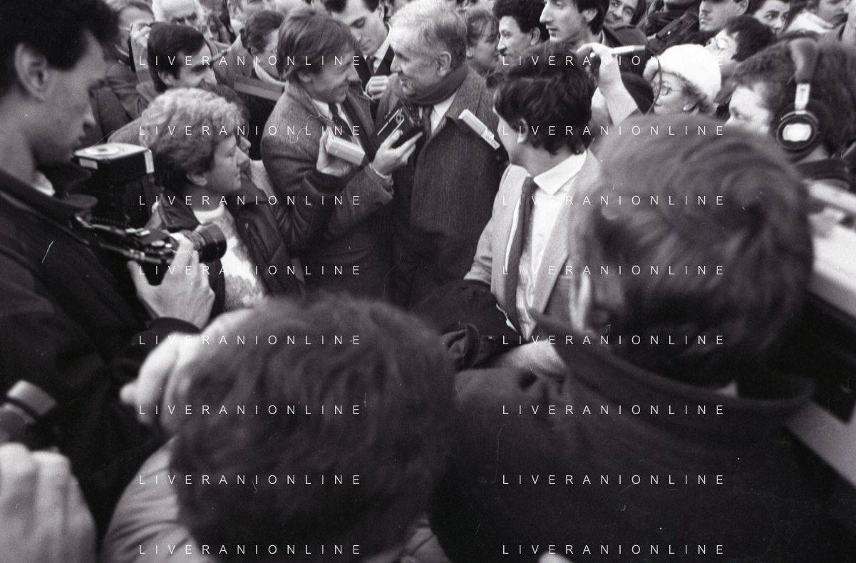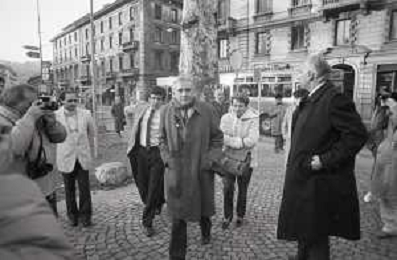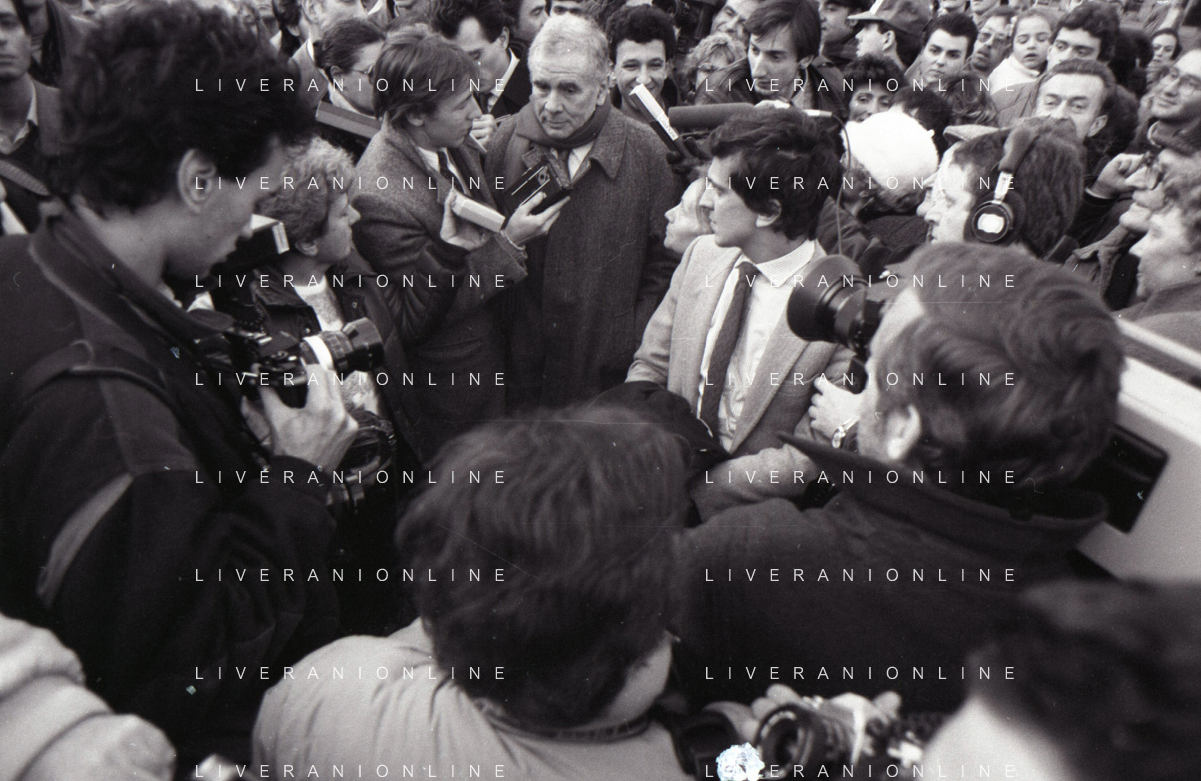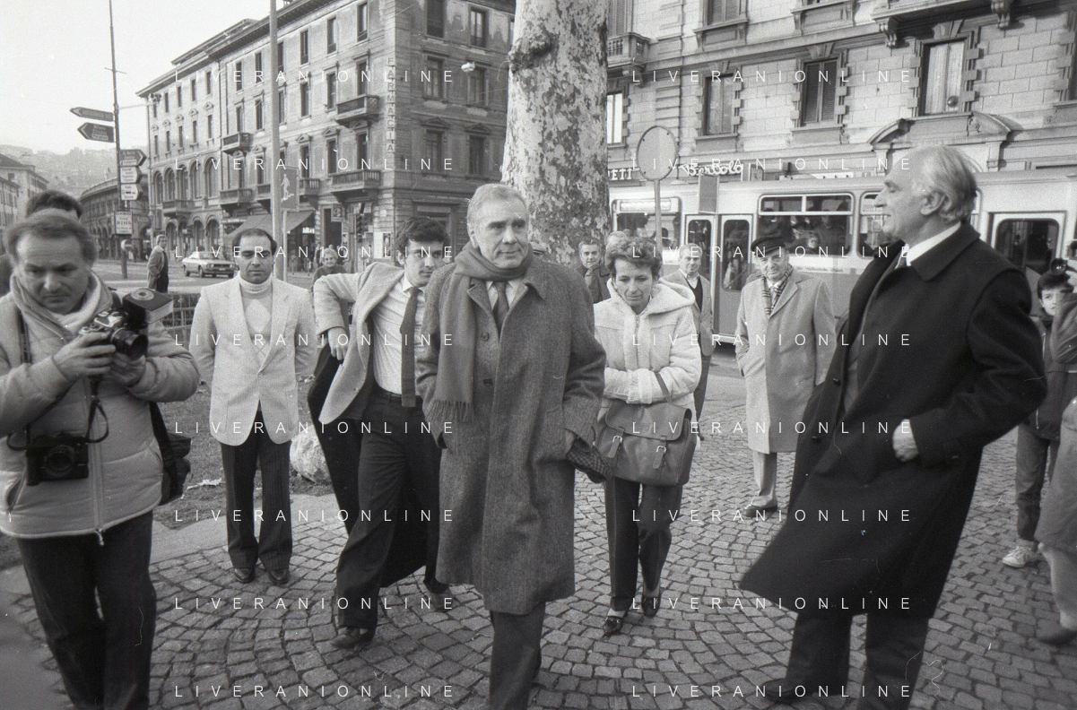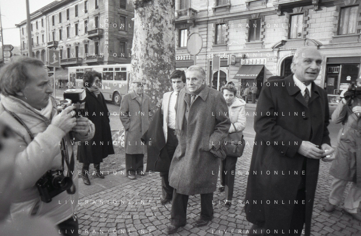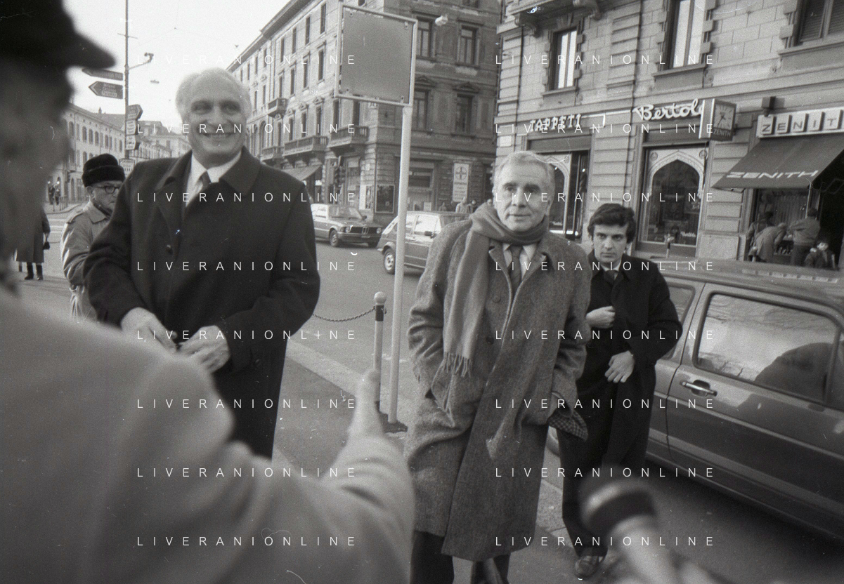 NEG-RETROSPETTIVA ENZO TORTORA PRESENTATORE TELEVISIVO-GIORNALISTA E POLITICO NELLA FOTO ENZO TORTORA A MILANO CON IL SEGRETARIO DEL PARTITO RADICALE GIOVANNI NEGRI AG ALDO LIVERANI SAS