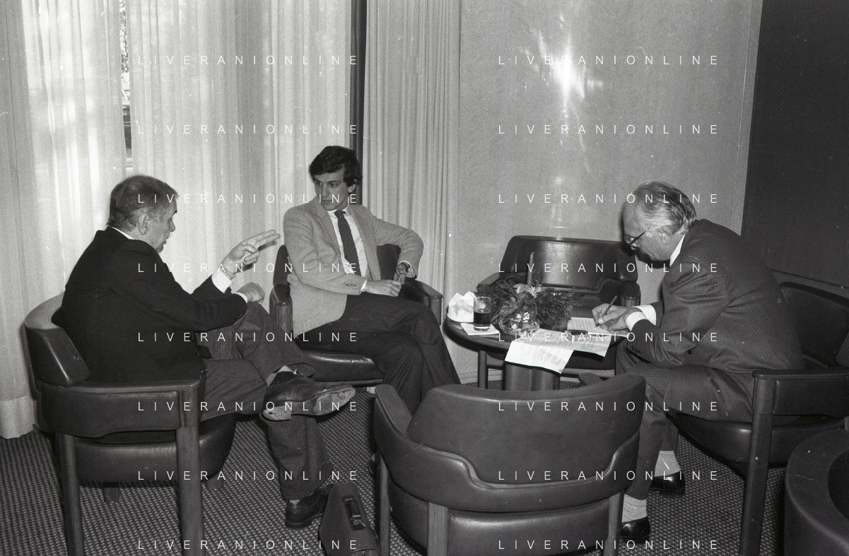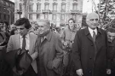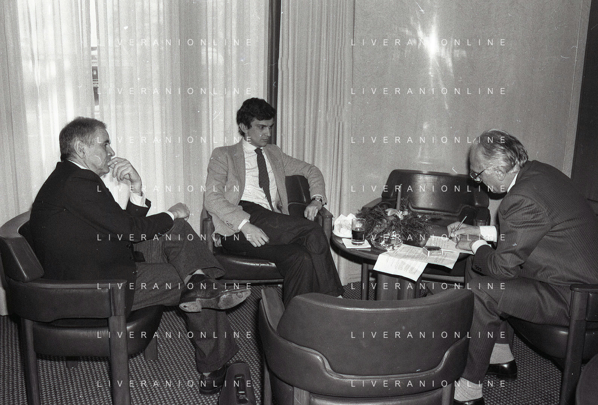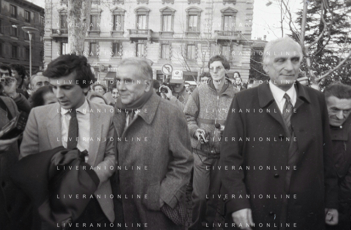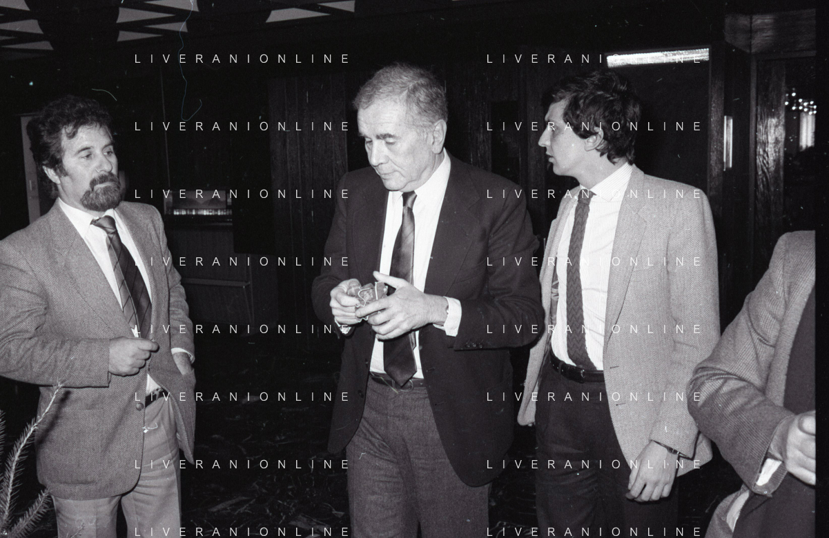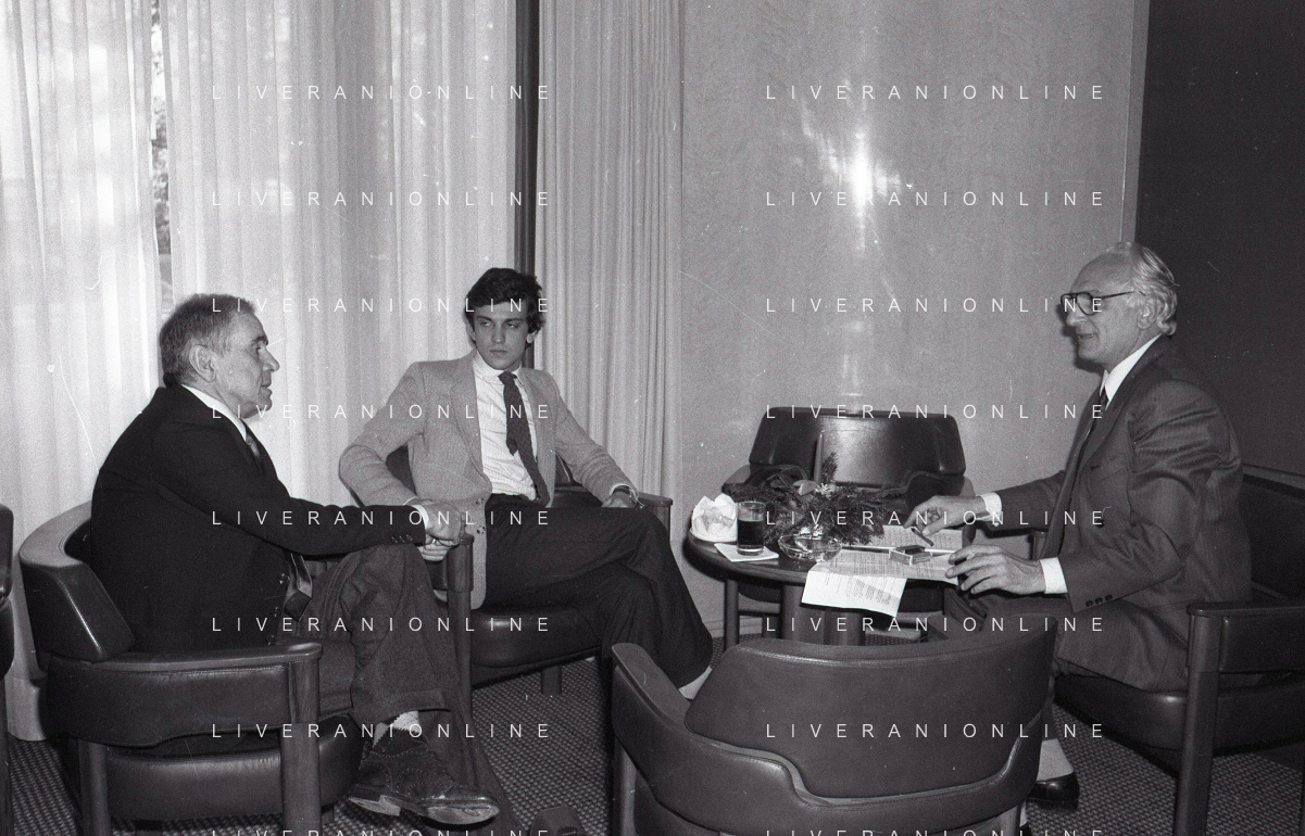 NEG-RETROSPETTIVA ENZO TORTORA PRESENTATORE TELEVISIVO-GIORNALISTA E POLITICO NELLA FOTO ENZO TORTORA A MILANO CON IL SEGRETARIO DEL PARTITO RADICALE GIOVANNI NEGRI E MARCO PANNELLA AG ALDO LIVERANI SAS