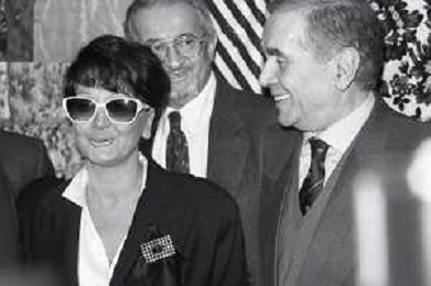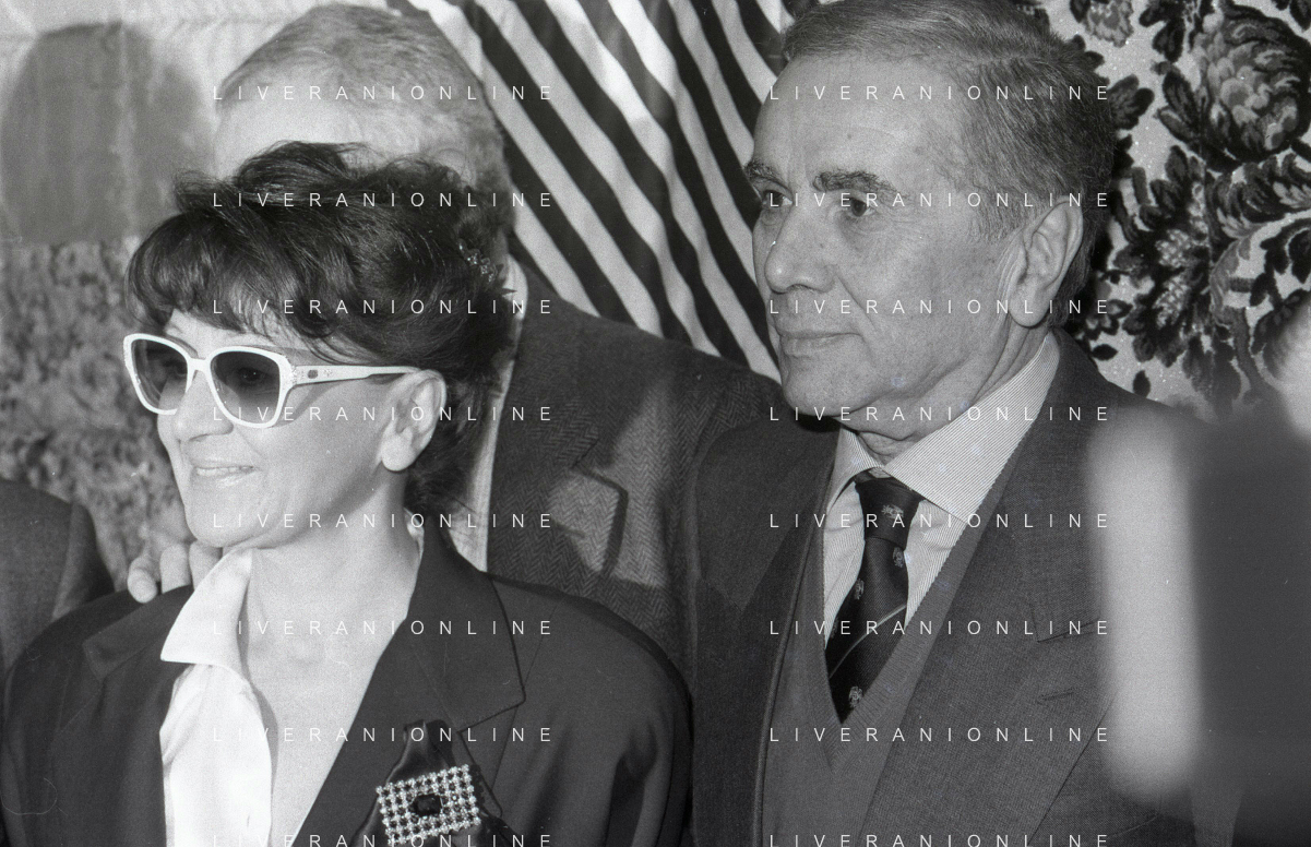 NEG-RETROSPETTIVA ENZO TORTORA PRESENTATORE TELEVISIVO-GIORNALISTA E POLITICO NELLA FOTO ENZO TORTORA A MILANO NELL'ANNO 1987 CON LA SORELLA ANNA AG ALDO LIVERANI SAS
