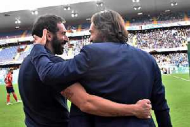 Serie B 2023-2023 Stadio Luigi Ferraris- Genova, 22 Ottobre 2023 Nella foto: Fabio Caserta e Andrea Pirlo -Sampdoria-Cosenza Campionato Calcio Serie B 22.10.2023 ©Andrea Rosito / AGENZIA ALDO LIVERANI SAS
