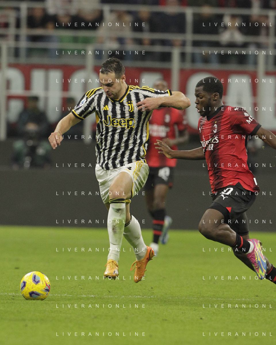Milan vs Juventus nella foto Pierre Kalulu (Milan) Milano 22-10-2023 Stadio Giuseppe Meazza - San Siro Campionato Serie A TIM - 9a giornata foto Roberto Garavaglia/ag. Aldo Liverani sas