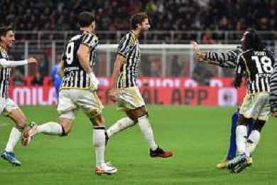 Milan vs Juventus nella foto esultanza Juventus dopo il gol dell'1 a 0 Milano 22-10-2023 Stadio Giuseppe Meazza - San Siro Campionato Serie A TIM - 9a giornata foto Roberto Garavaglia/ag. Aldo Liverani sas / AGENZIA ALDO LIVERANI SAS