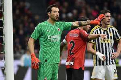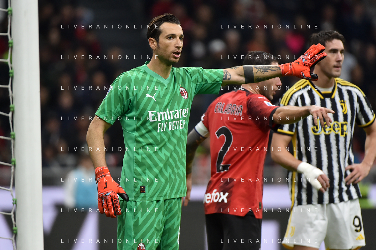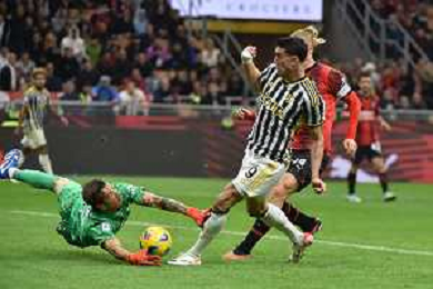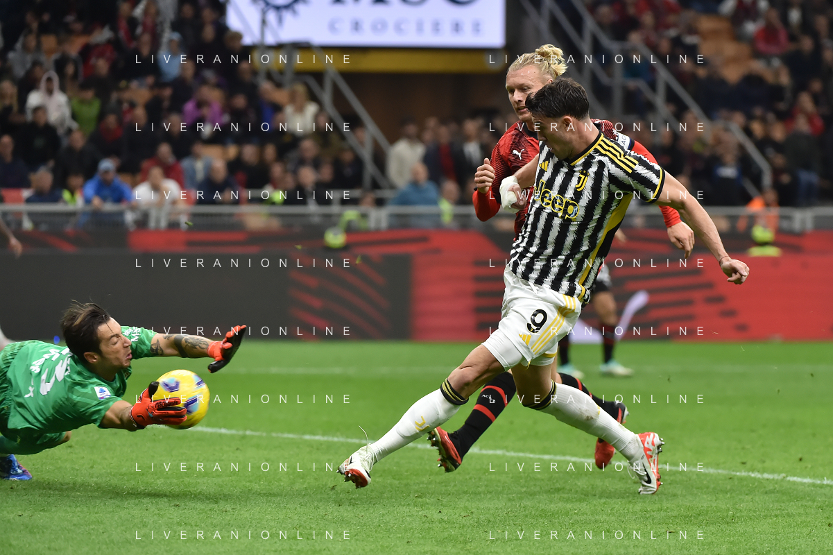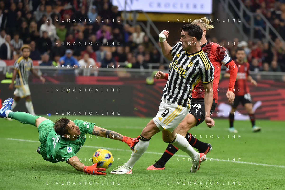 Milan vs Juventus nella foto Dusan Vlahovic (Juventus) occasione da gol nel finale Milano 22-10-2023 Stadio Giuseppe Meazza - San Siro Campionato Serie A TIM - 9a giornata foto Roberto Garavaglia/ag. Aldo Liverani sas / AGENZIA ALDO LIVERANI SAS