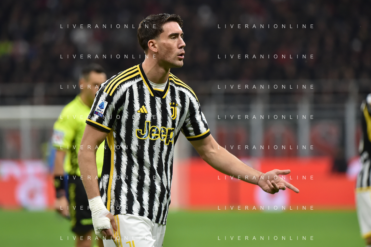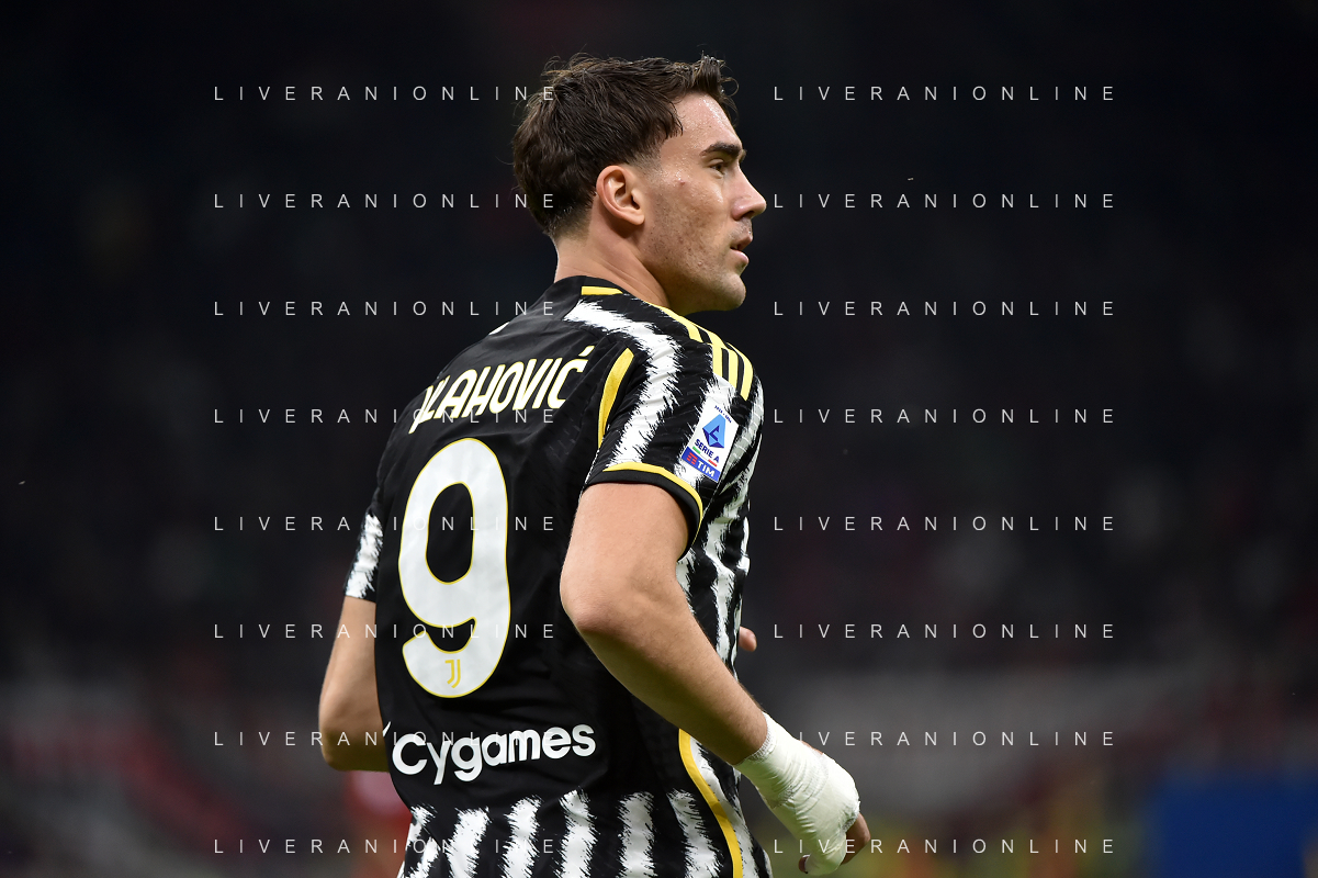 Milan vs Juventus nella foto Dusan Vlahovic (Juventus) Milano 22-10-2023 Stadio Giuseppe Meazza - San Siro Campionato Serie A TIM - 9a giornata foto Roberto Garavaglia/ag. Aldo Liverani sas / AGENZIA ALDO LIVERANI SAS