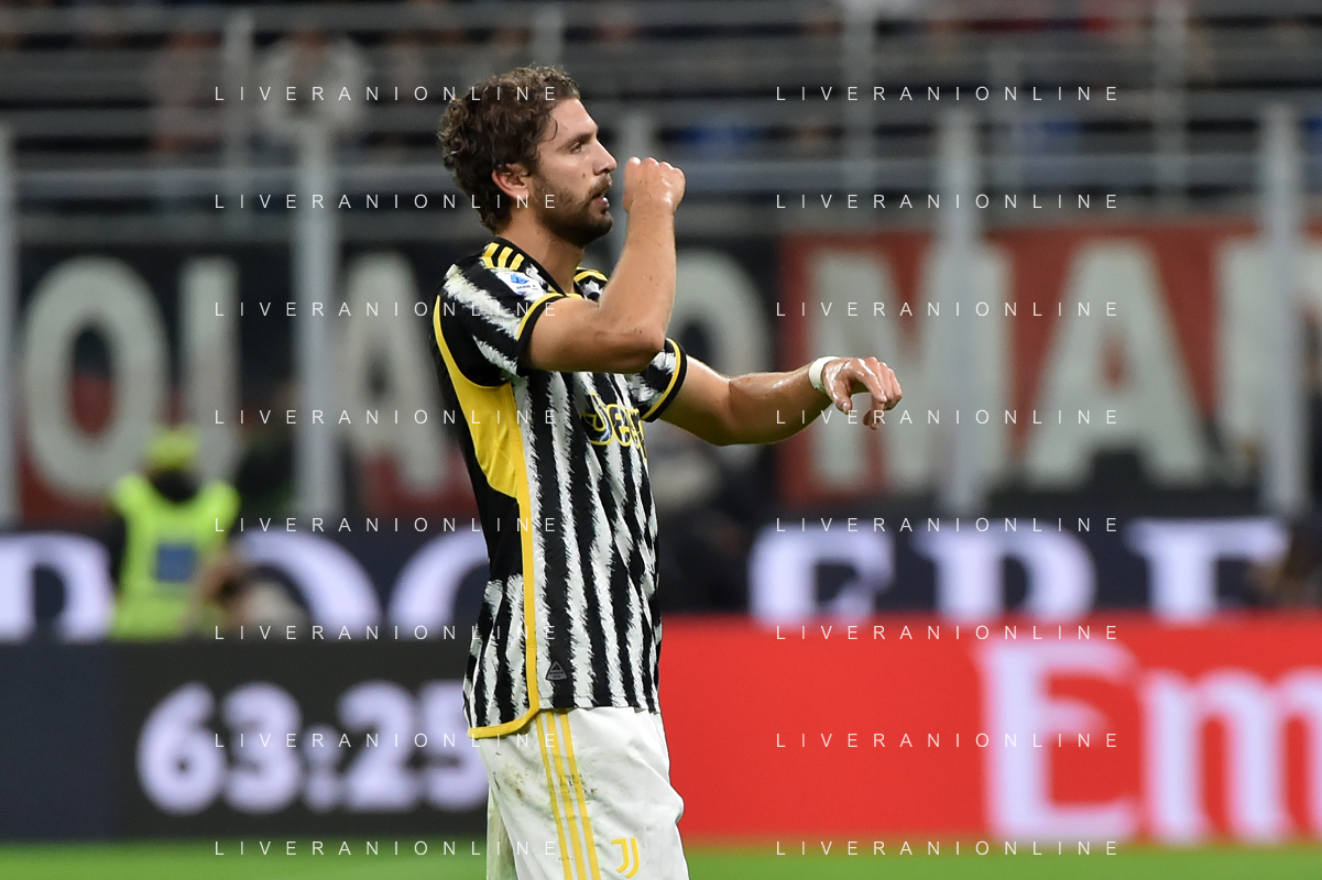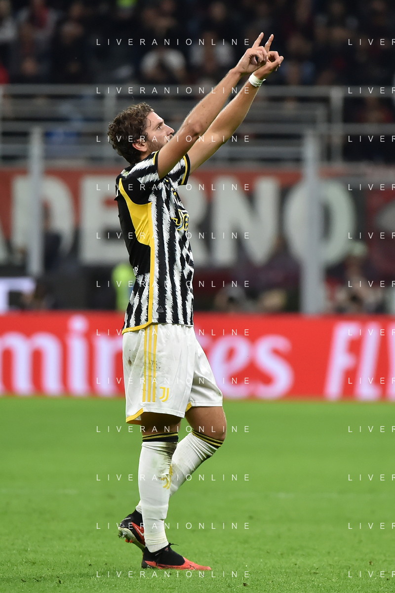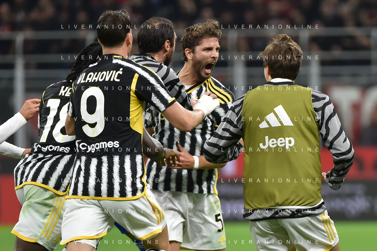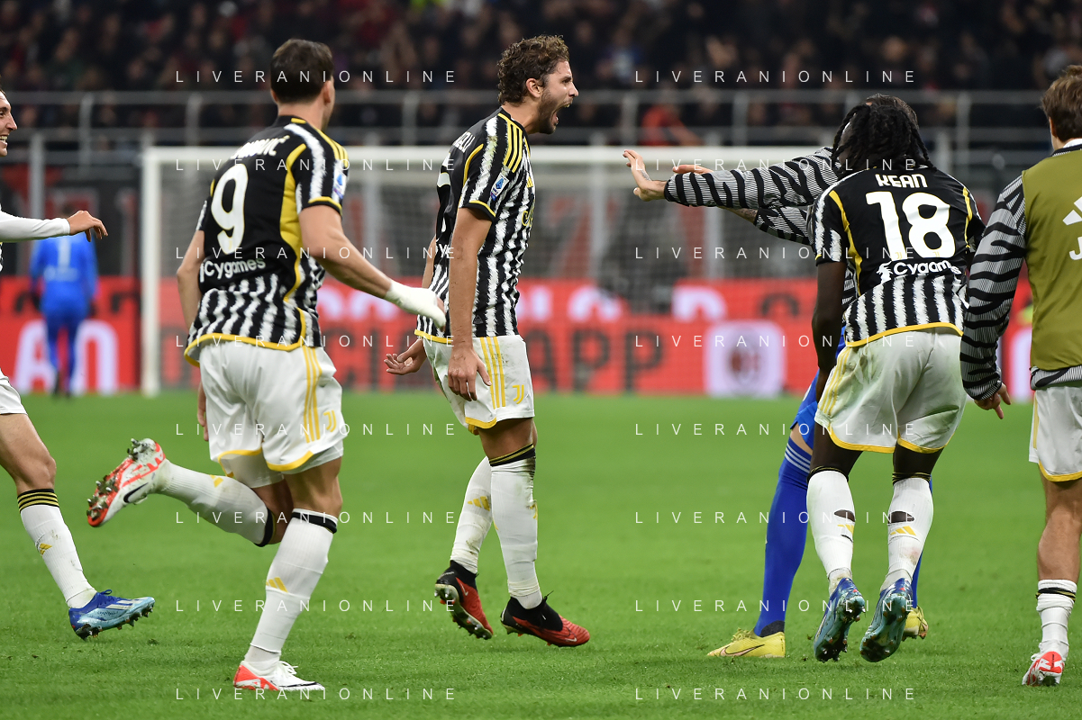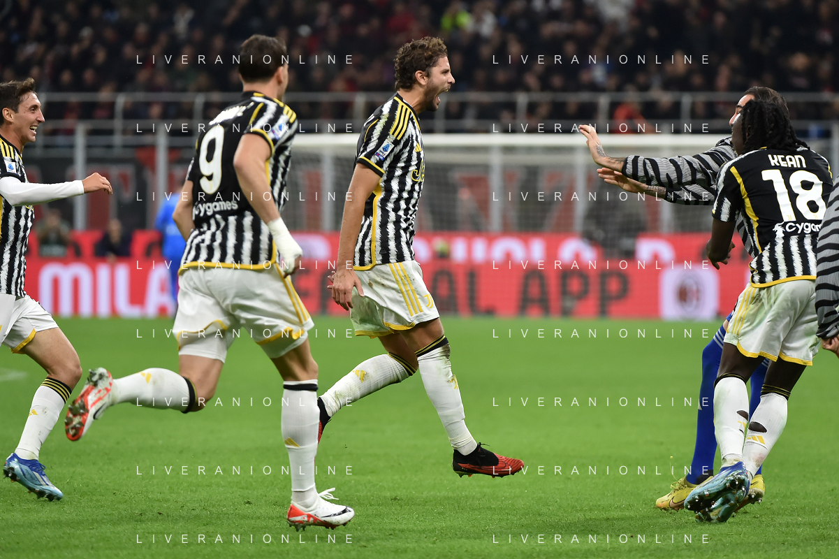 Milan vs Juventus nella foto Manuel Locatelli (Juventus) esulta dopo il gol dell'1 a 0 Milano 22-10-2023 Stadio Giuseppe Meazza - San Siro Campionato Serie A TIM - 9a giornata foto Roberto Garavaglia/ag. Aldo Liverani sas / AGENZIA ALDO LIVERANI SAS