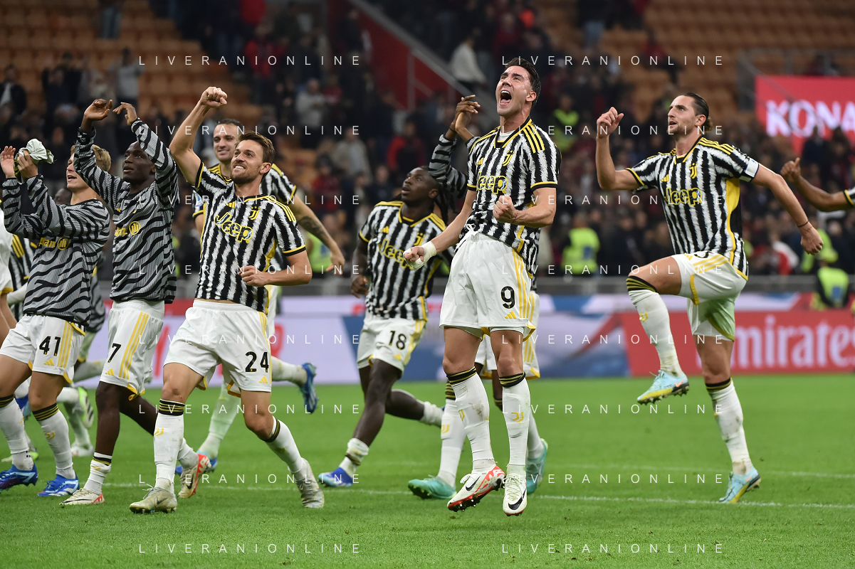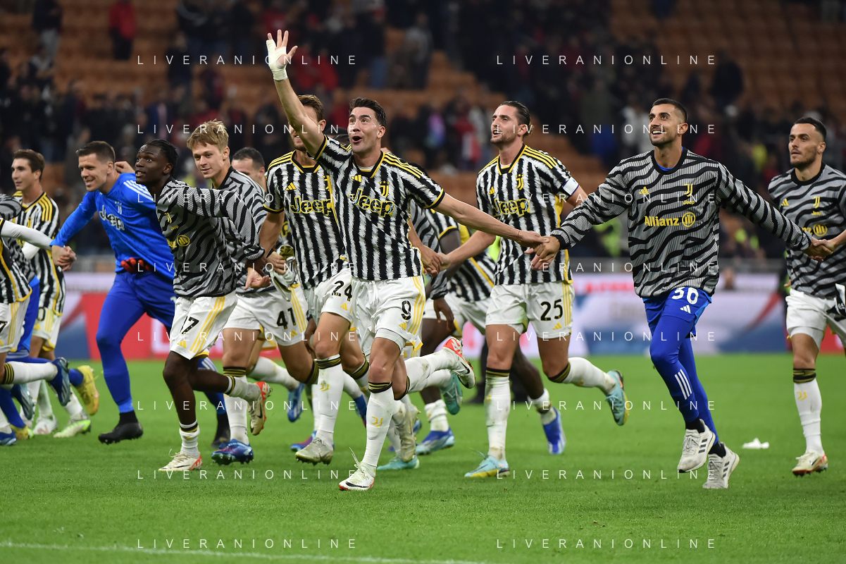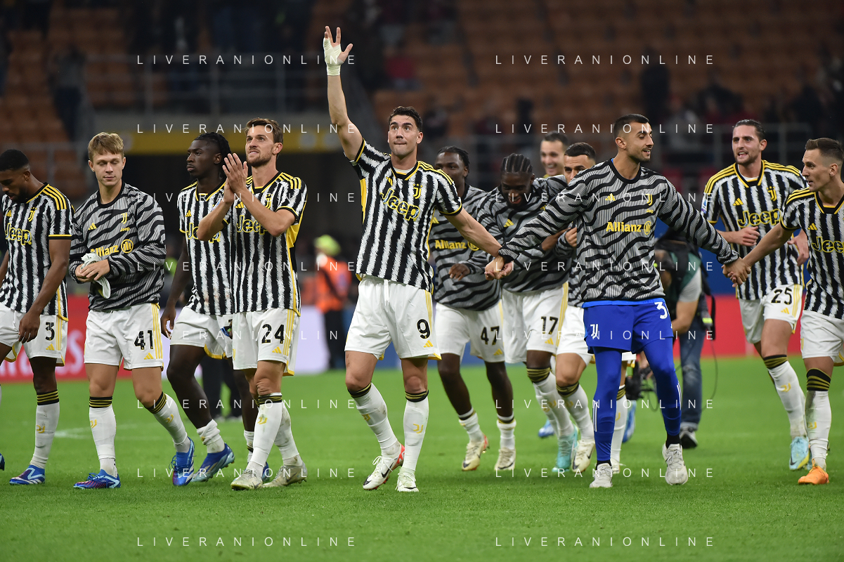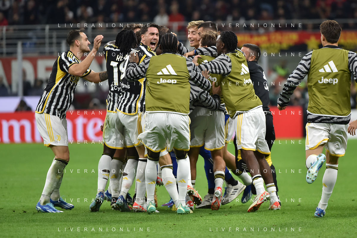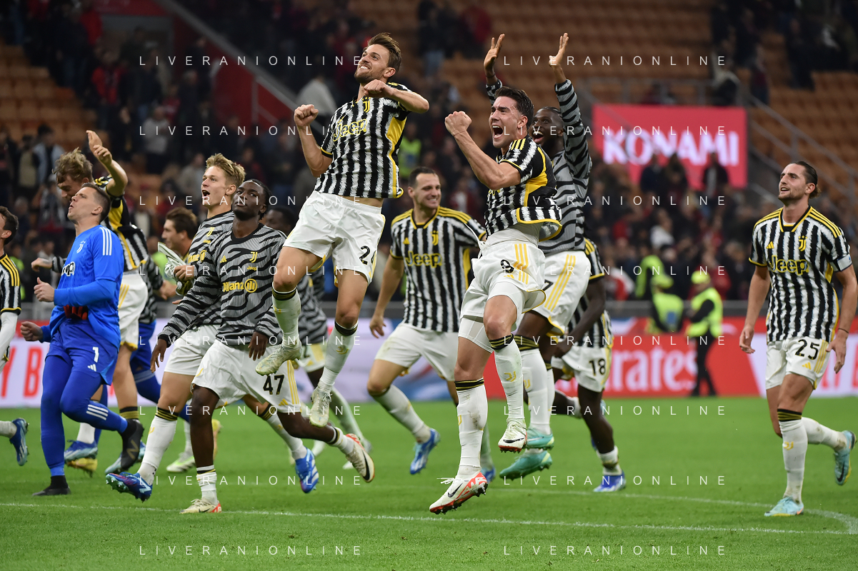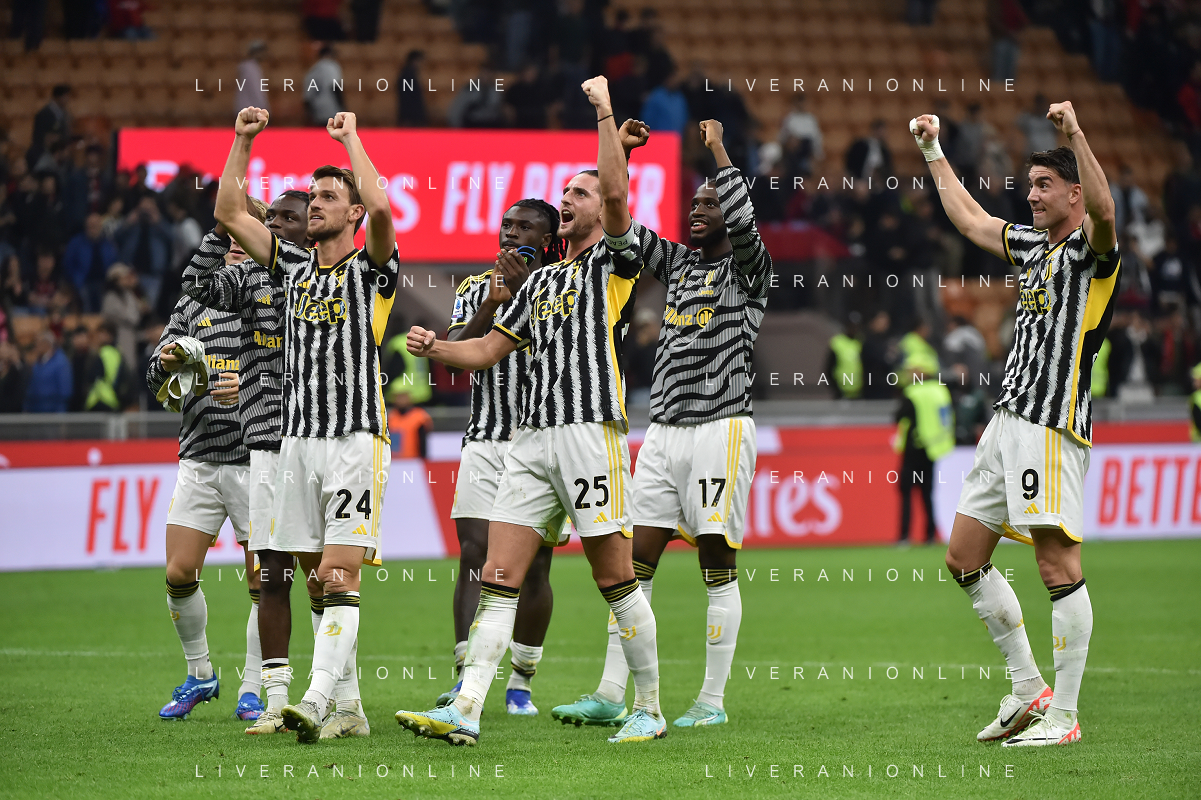 Milan vs Juventus nella foto esultanza finale Juventus Milano 22-10-2023 Stadio Giuseppe Meazza - San Siro Campionato Serie A TIM - 9a giornata foto Roberto Garavaglia/ag. Aldo Liverani sas / AGENZIA ALDO LIVERANI SAS