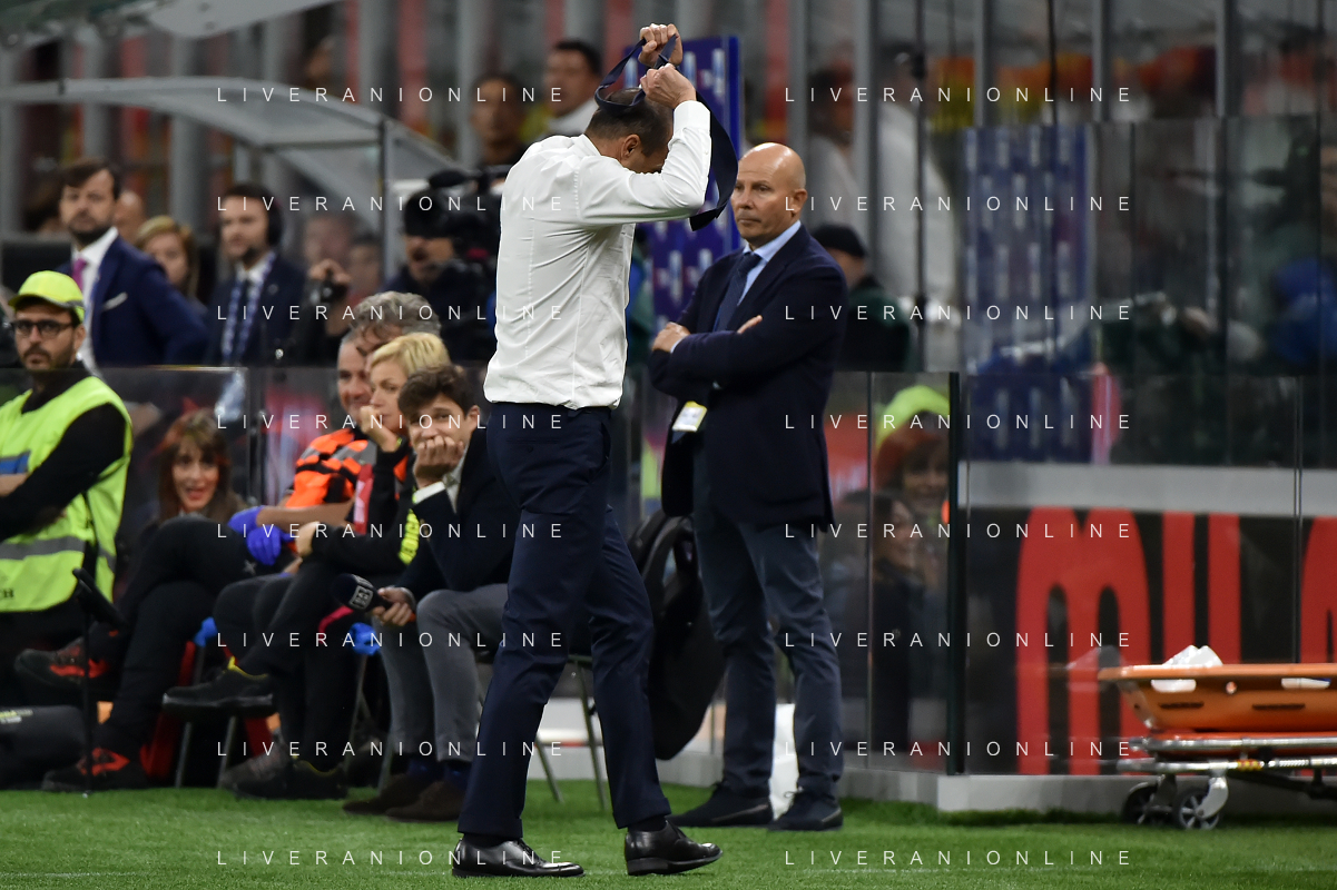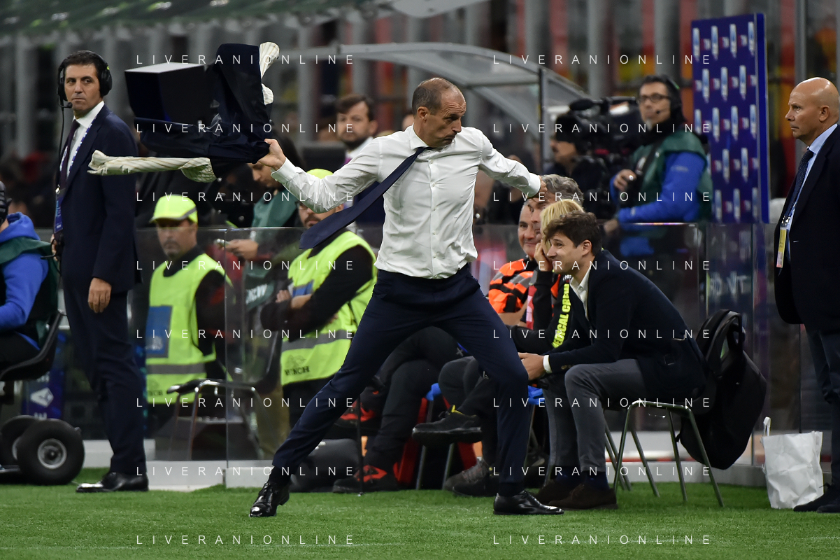 Milan vs Juventus nella foto Massimiliano Allegri allenatore Juventus nei minuti finali lancia la cravatta Milano 22-10-2023 Stadio Giuseppe Meazza - San Siro Campionato Serie A TIM - 9a giornata foto Roberto Garavaglia/ag. Aldo Liverani sas / AGENZIA ALDO LIVERANI SAS