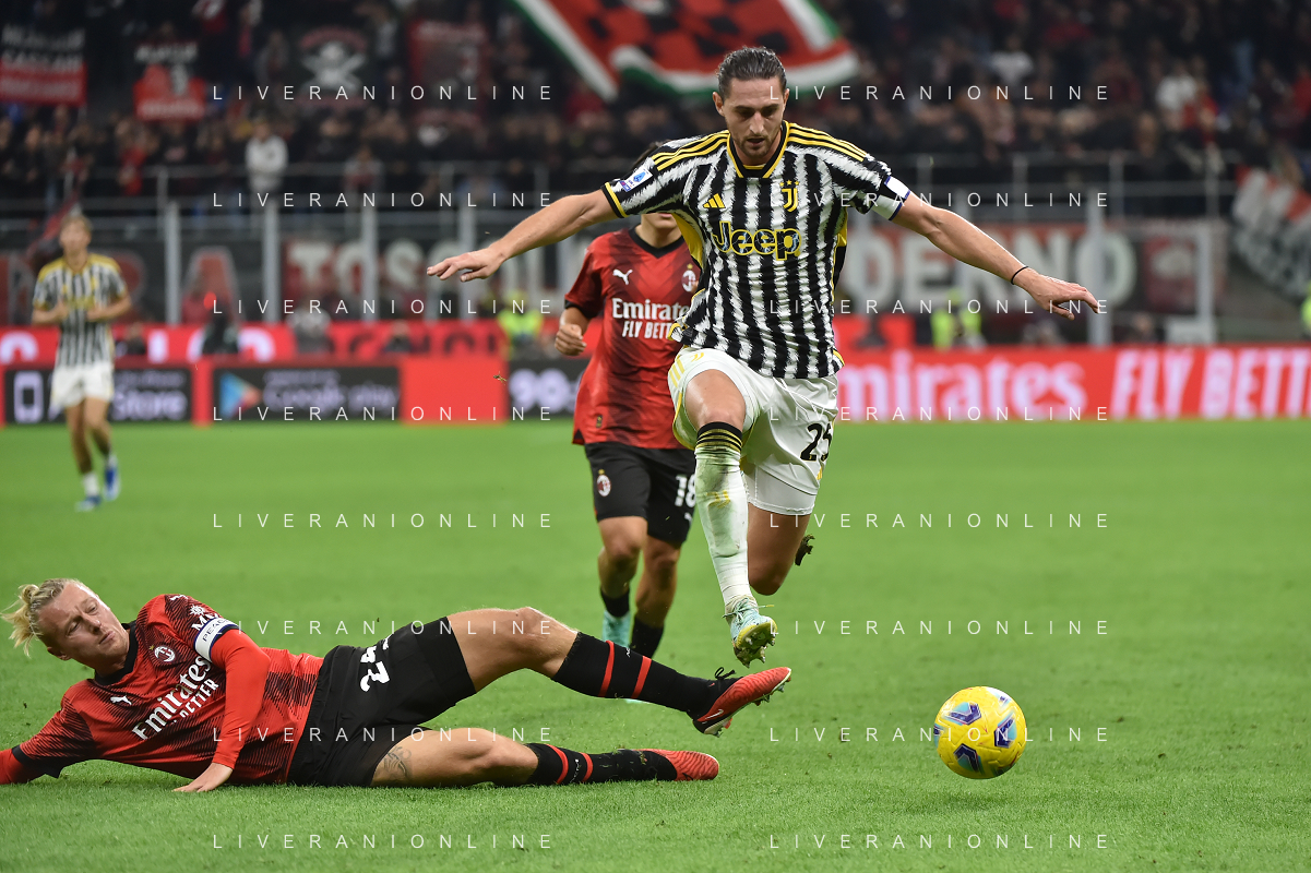 Milan vs Juventus nella foto Simon Kjaer (Milan) e Adrien Rabiot (Juventus) Milano 22-10-2023 Stadio Giuseppe Meazza - San Siro Campionato Serie A TIM - 9a giornata foto Roberto Garavaglia/ag. Aldo Liverani sas / AGENZIA ALDO LIVERANI SAS
