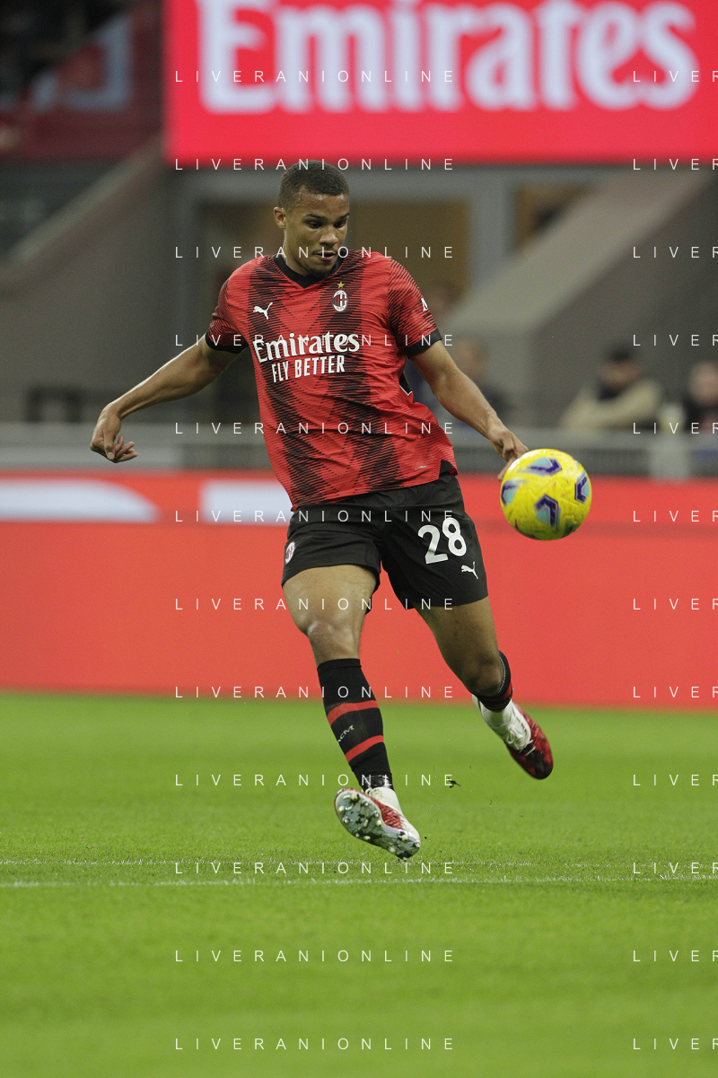 Milan vs Juventus nella foto Fikayo Tomori (Milan) trattiene Dusan Vlahovic (Juventus) in area Milano 22-10-2023 Stadio Giuseppe Meazza - San Siro Campionato Serie A TIM - 9a giornata foto Roberto Garavaglia/ag. Aldo Liverani sas / AGENZIA ALDO LIVERANI SAS