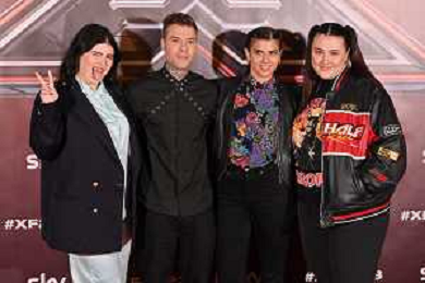 TVRG Photocall X Factor 2023 nella foto i quattro giudici, da SX Ambra Angiolini, Morgan, Fedez e Dargen D'Amico Milano 24-10-2023 Photocall con il cast di X Factor 2023 foto Roberto Garavaglia/ag. Aldo Liverani sas