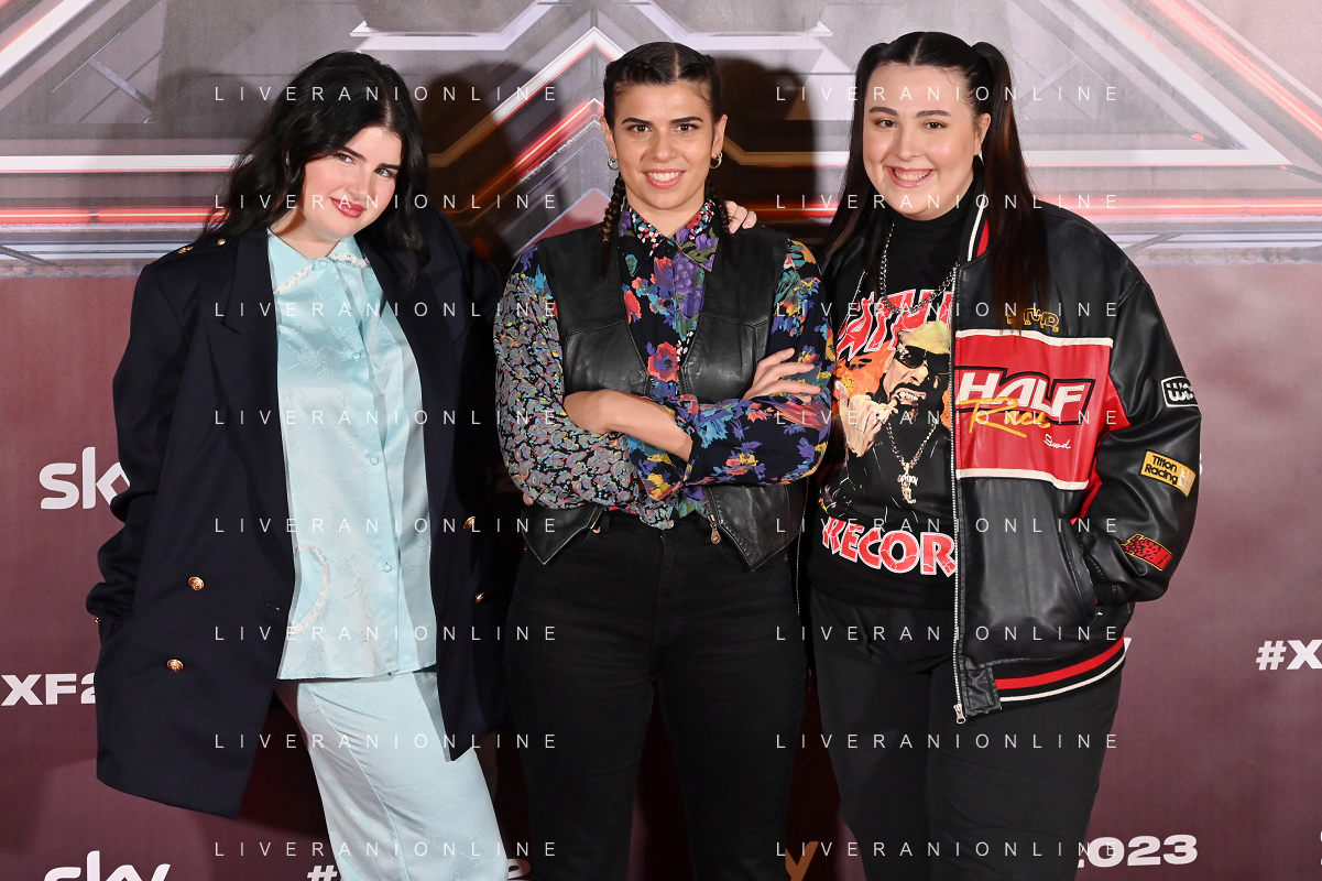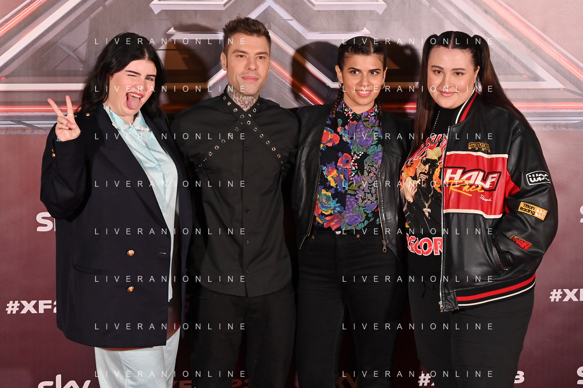 TVRG Photocall X Factor 2023 nella foto la squadra di Fedez, da SX Maria Tomba, Sarafine e Asia Leva Milano 24-10-2023 Photocall con il cast di X Factor 2023 foto Roberto Garavaglia/ag. Aldo Liverani sas