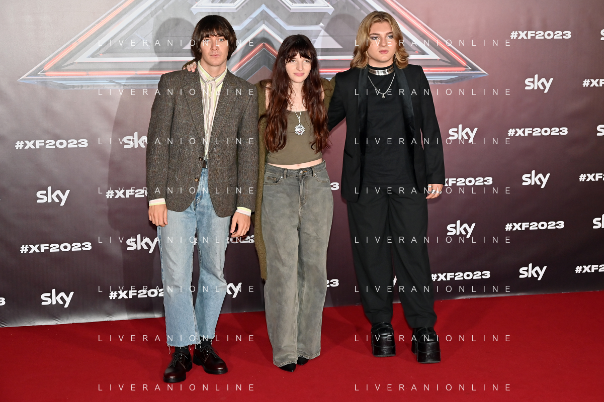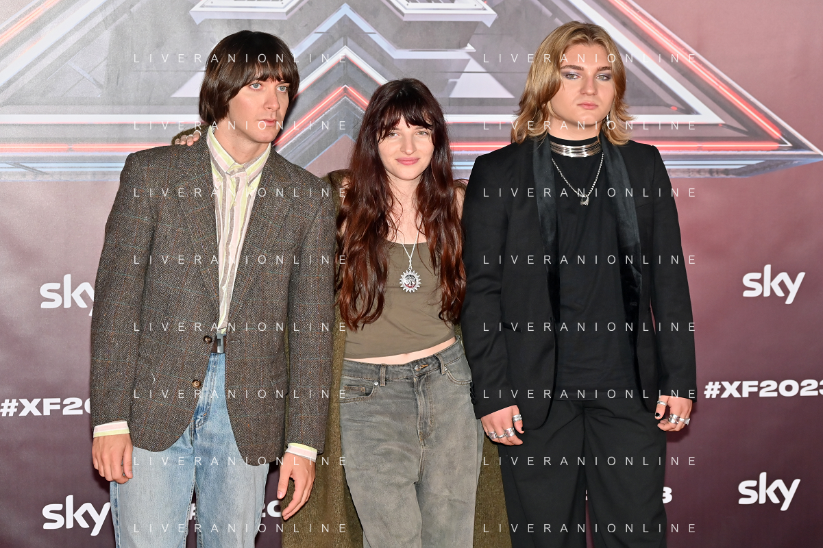 TVRG Photocall X Factor 2023 nella foto la squadra di Morgan, da SX Niccolo' Selmi, Animaux Formidables e Sick Teens Milano 24-10-2023 Photocall con il cast di X Factor 2023 foto Roberto Garavaglia/ag. Aldo Liverani sas