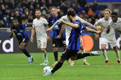 Inter vs Salisburgo nella foto Hakan Calhanoglu (Inter) segna il gol del 2 a 1 Milano 24-10-2023 Stadio Giuseppe Meazza - San Siro UEFA Champions League fase a gironi 3a giornata - Gruppo D foto Roberto Garavaglia/ag. Aldo Liverani sas/AGENZIA ALDO LIVERANI SAS