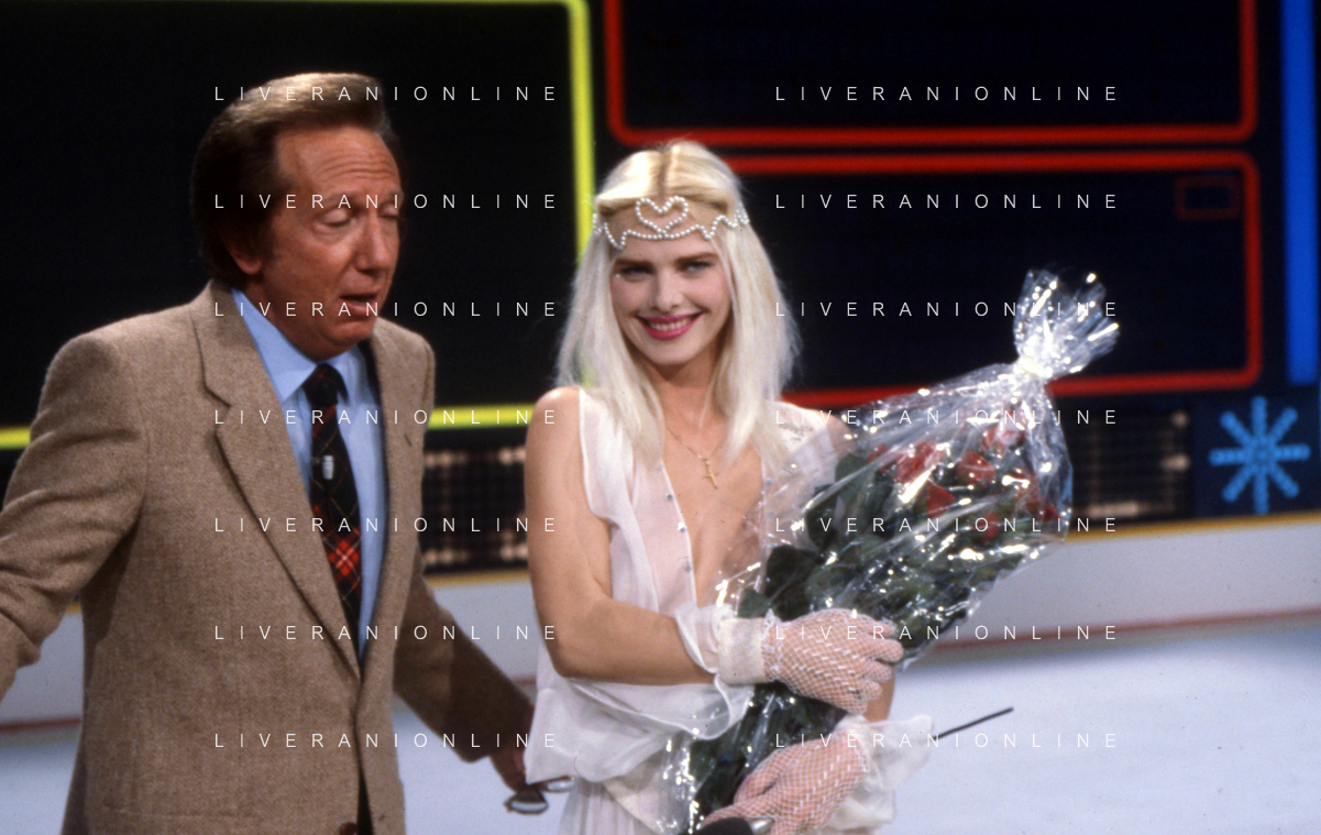 Dia- RETROSPETTIVA ILONA STALLER 'CICCIOLINA' ATTRICE, PORNO STAR NELLA FOTO CON MIKE BONGIORNO, OSPITE DEL PROGRAMMA TELEVISIVO 'SUPERFLASH' NELL'ANNO 1984 AG ALDO LIVERANI SAS
