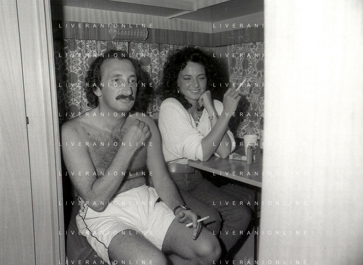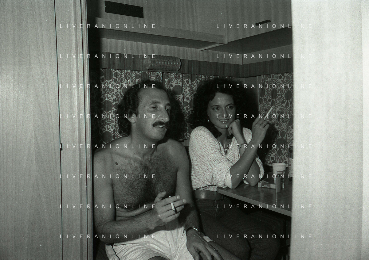 NEG-RETROSPETTIVA COMPLESSO I RICCHI E POVERI NELLA FOTO FRANCO GATTI CON LA MOGLIE E STEFANIA PICASSO IL COMPLESSO MUSICALE DEI RICCHI E POVERI NELL'ANNO 1981 A MILAZZO AG ALDO LIVERANI SAS