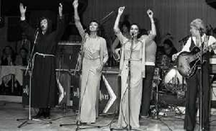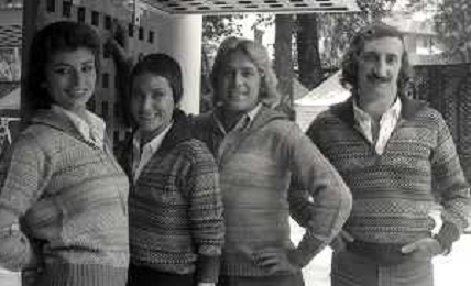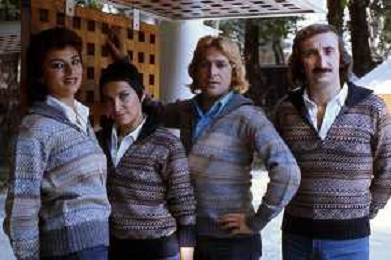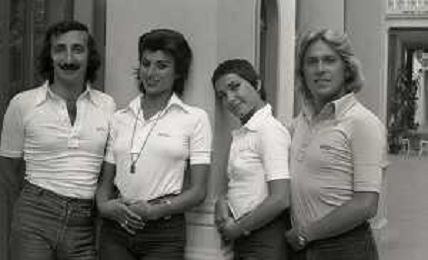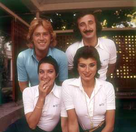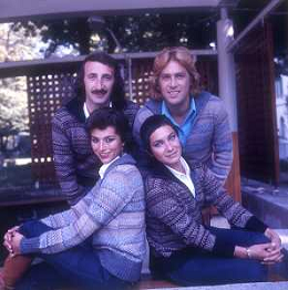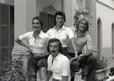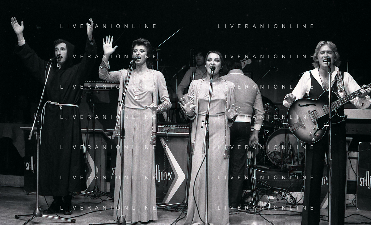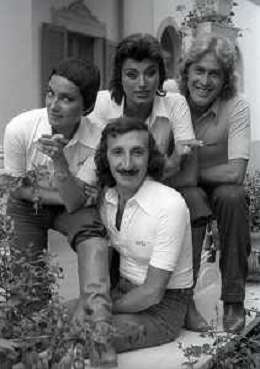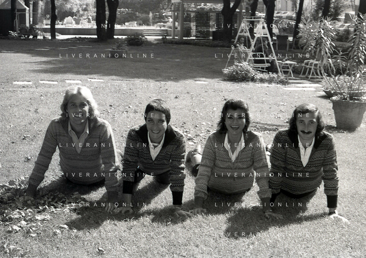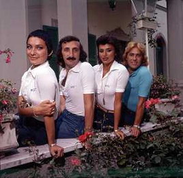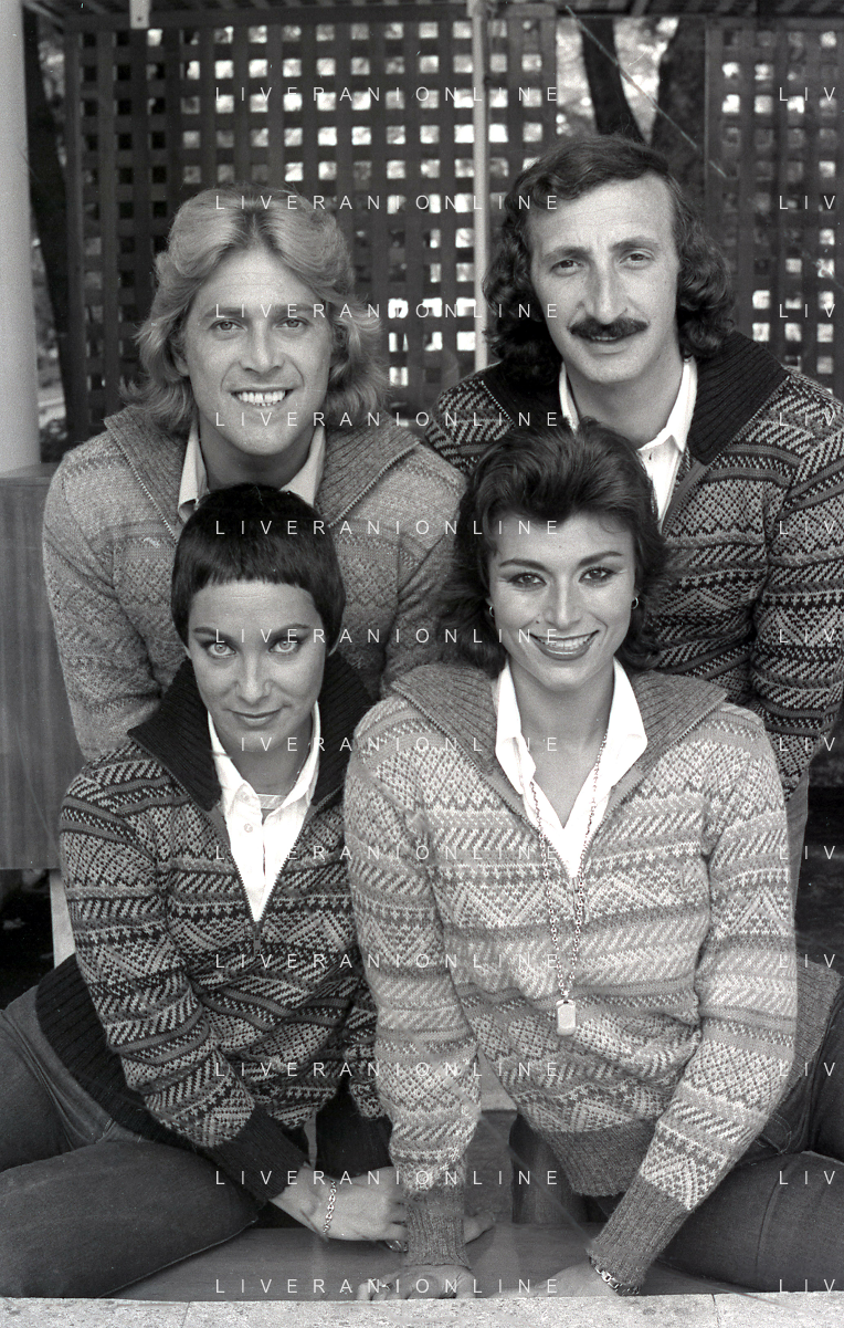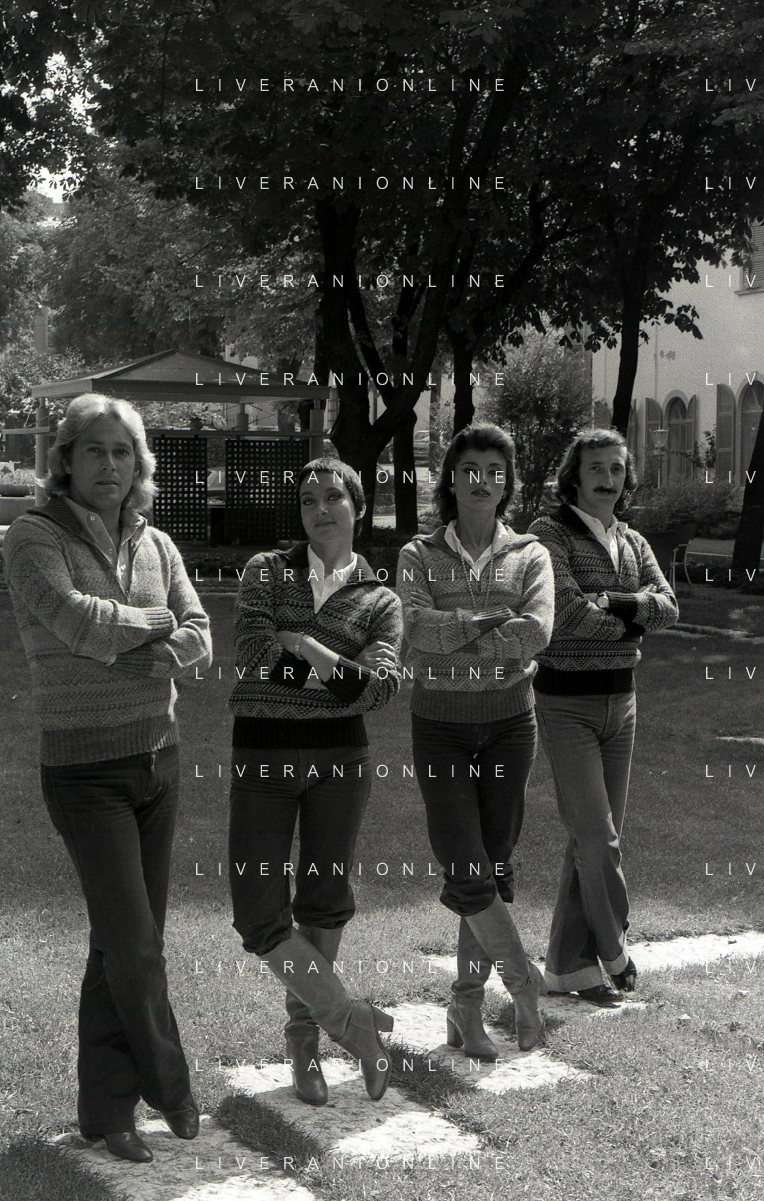 COL-RETROSPETTIVA COMPLESSO I RICCHI E POVERI NELLA FOTO COMPLESSO MUSICALE DEI RICCHI E POVERI A SALSOMAGGIORE 06-09-1976 Angelo Sotgiu, Franco Gatti, Angela Brambati e Marina Occhiena AG ALDO LIVERANI SAS