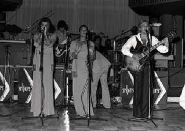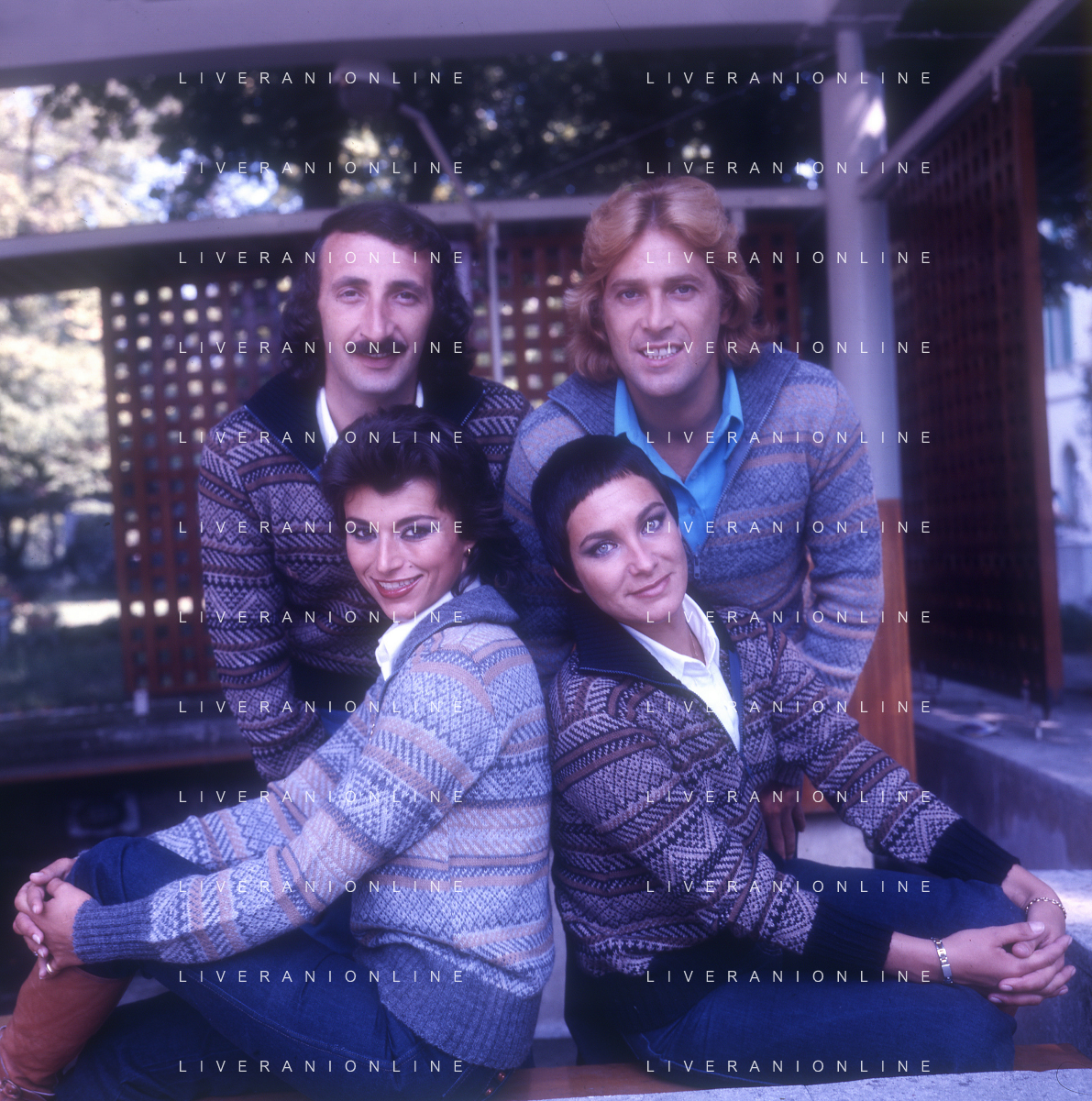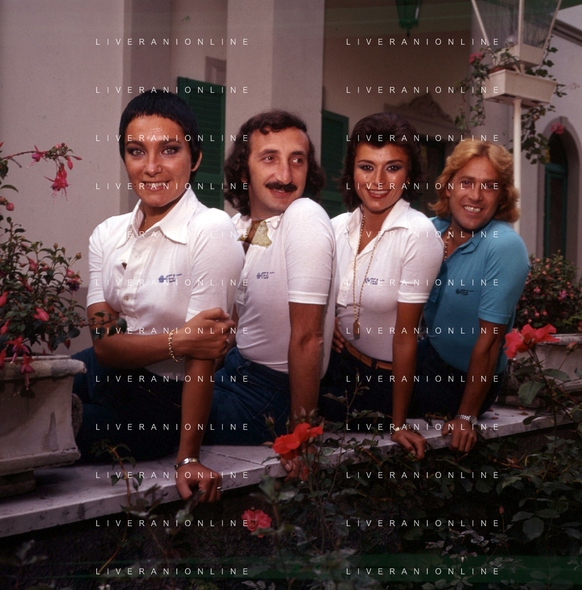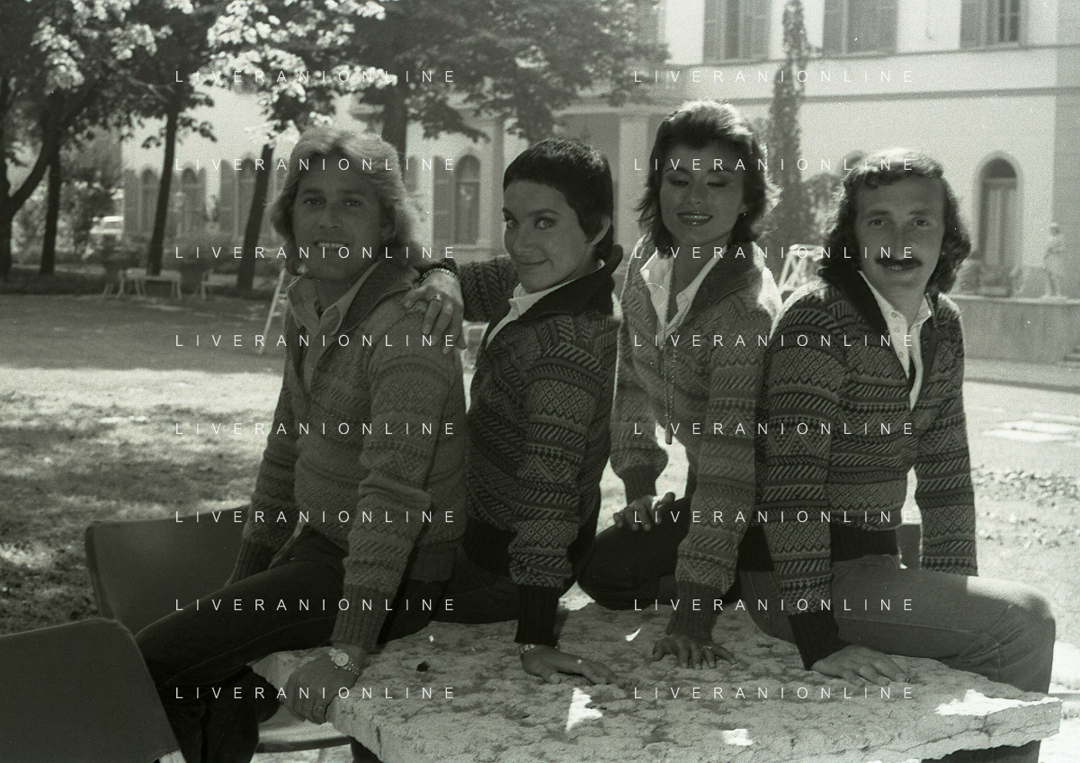 DIAP-RETROSPETTIVA COMPLESSO I RICCHI E POVERI NELLA FOTO COMPLESSO MUSICALE DEI RICCHI E POVERI A SALSOMAGGIORE 06-09-1976 Angelo Sotgiu, Franco Gatti, Angela Brambati e Marina Occhiena AG ALDO LIVERANI SAS