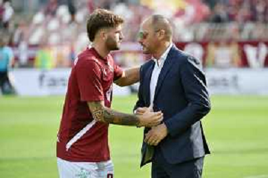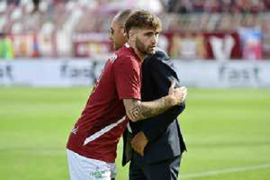 TVRG FeralpiSalo' vs Reggiana nella foto Manolo Portanova (Reggiana) e Carmelo Salerno presidente e amministratore delegato Reggiana Piacenza 28-10-2023 Stadio Leonardo Garilli Campionato Serie BKT - 11a giornata foto Roberto Garavaglia/ag. Aldo Liverani sas