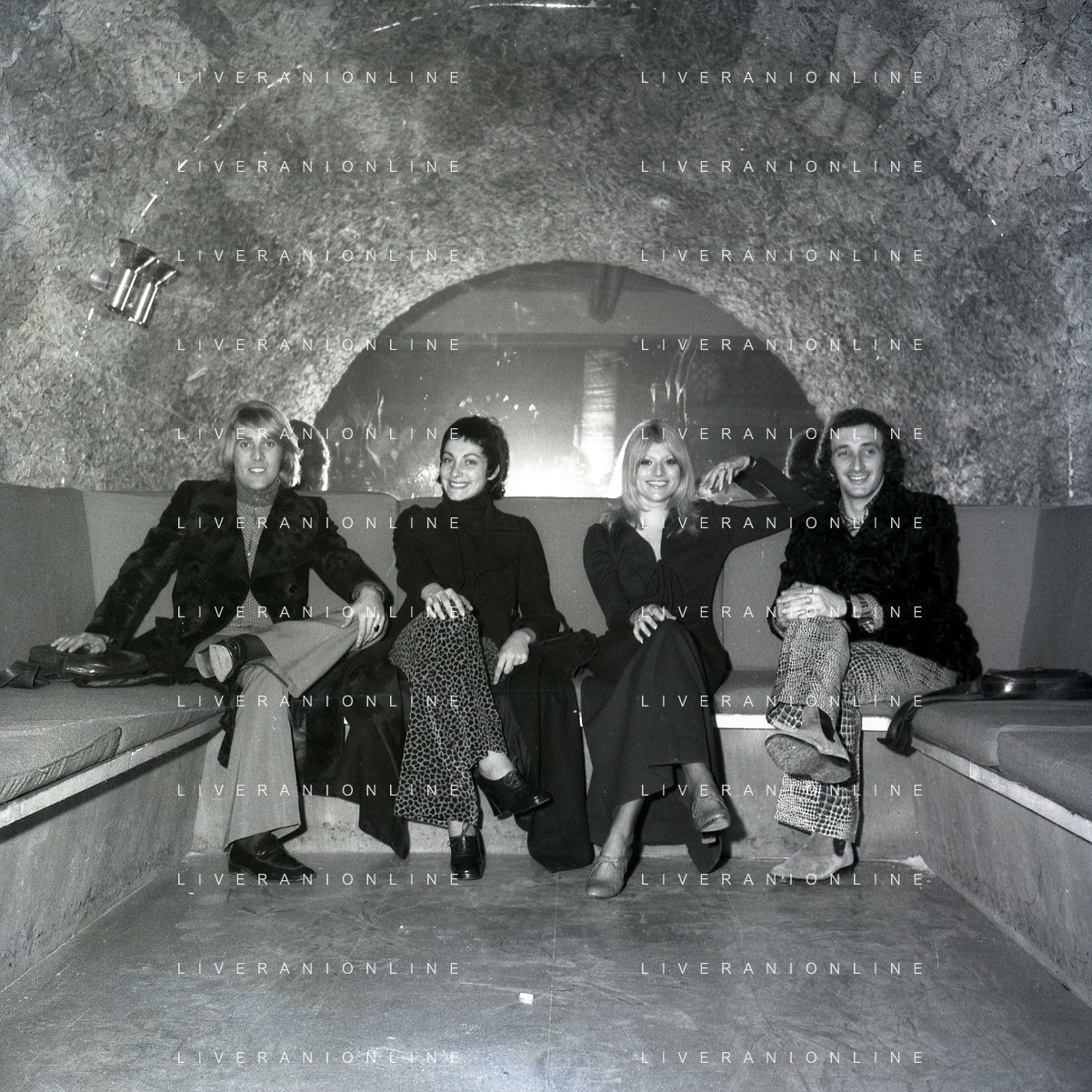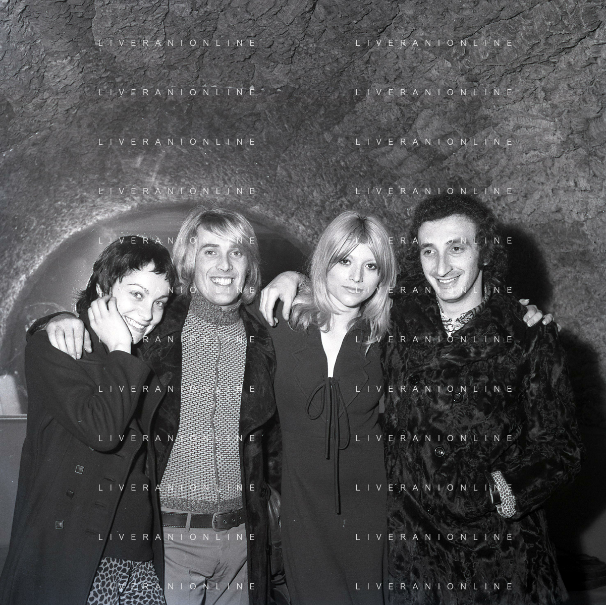 NEG-RETROSPETTIVA COMPLESSO I RICCHI E POVERI NELLA FOTO COMPLESSO MUSICALE DEI RICCHI E POVERI A FIRENZE NELL'ANNO 1970 Angelo Sotgiu, Franco Gatti, Angela Brambati e Marina Occhiena AG ALDO LIVERANI SAS