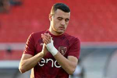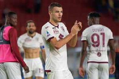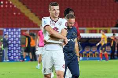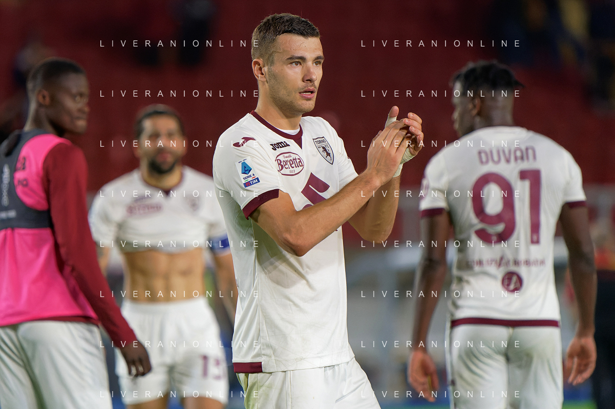 Nemanja Radonjic of Torino FC applauds fans during the Italian soccer Serie A match US Lecce vs Torino FC on October 28, 2023 at Via del Mare Stadium in Lecce, Italy. Photo by Emmanuele Mastrodonato/ag. Aldo Liverani sas